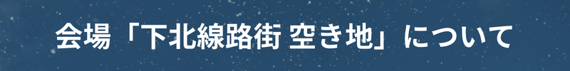 会 場:下北線路街 空き地(東京都世田谷区北沢2丁目33番12号 付近)