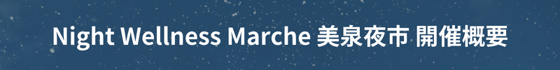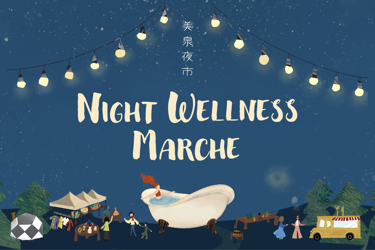 Night Wellness Marche 美泉夜市は、ミネラル温泉スパでしっかり身体の隅々まで温まり、身体を中からもぽかぽかにする温活フードを楽しみ、その日から始められる温活アイテムがゲットできる「行くだけでまるっと温活できる、ミネラル温泉スパ施設」です。