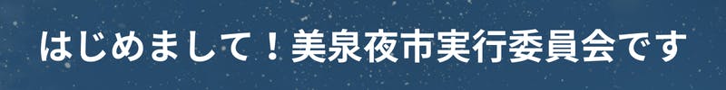 はじめまして、美泉夜市実行委員会です。わたしたちは、今回このイベントのために集結した<イベント・サウナ・美容と健康>のプロフェッショナルチームです。