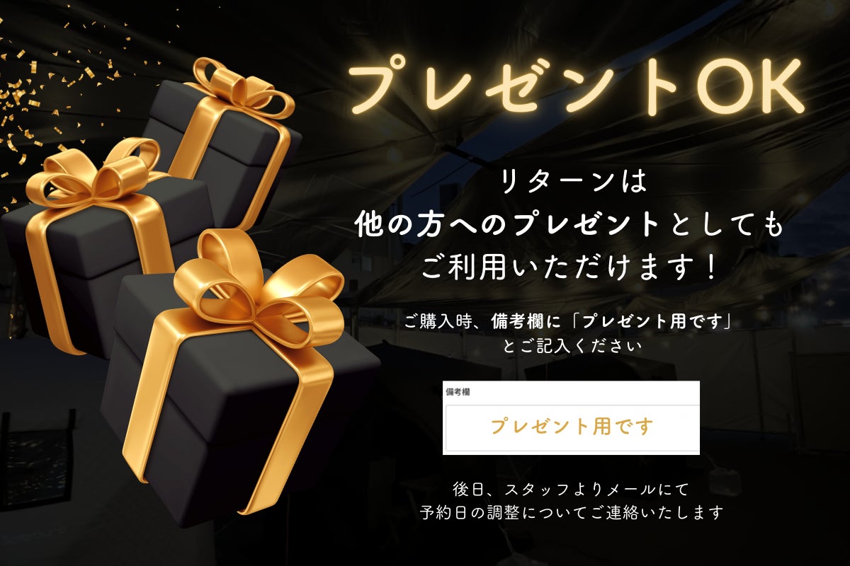 美泉夜市のリターンは、「1年間がんばった自分へのご褒美」や「大切な方への日頃の感謝や想いを伝える」贈り物としてもご利用いただけます。「クリスマス・バレンタインなどのシーズナルギフト」や「記念日のお祝い」など、あなたの想いを伝えるギフトとしていかがでしょうか?