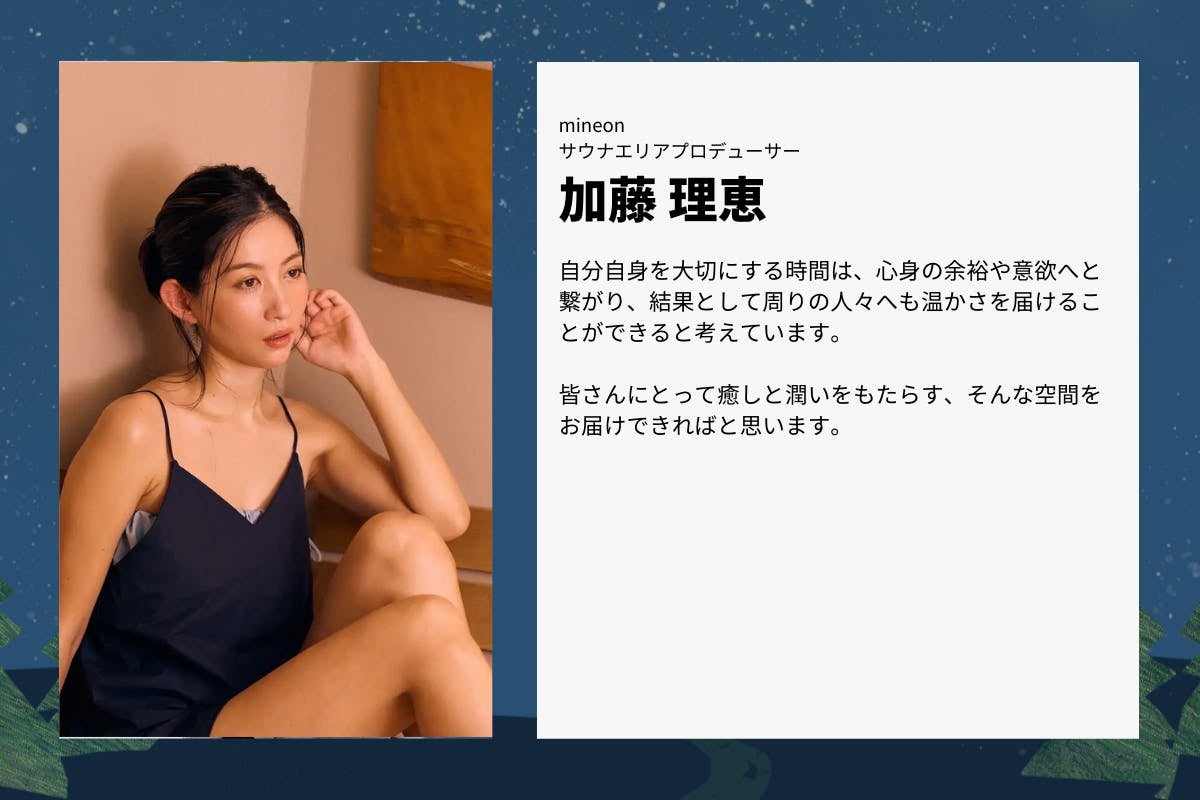 そこで、これまで日本各地で人気のアウトドアサウナイベントを開催してきたプロフェッショナルチームに加え、新たに美容と健康に特化したプロデューサー陣を迎え、日々の暮らしのなかで”からだを温める”ということを無理せず続けられるヒントを盛り込んだイベントを構築していきます。日常的に身体を温めることで、要らないものはデトックスし、心も体もリセット!会場での温泉スパだけでなく、日々の温活に役立つヒントを会場に散りばめたいと思います!