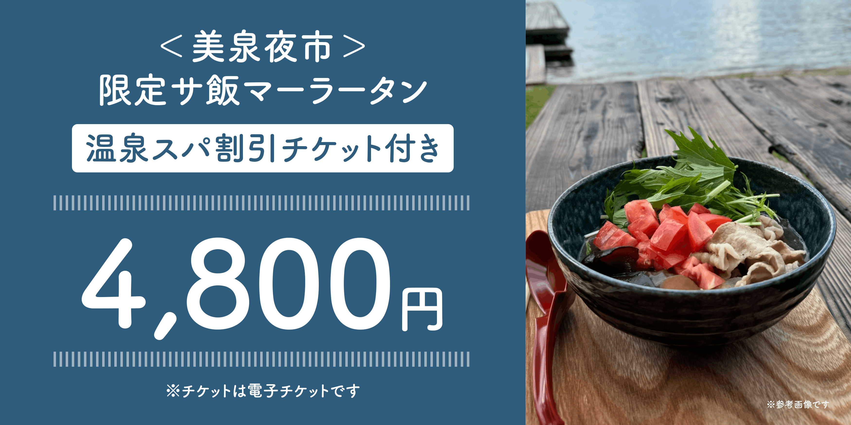 ミネラル温泉スパをしっかり温まったあとに、会場で食べられる美泉夜市限定・サ飯マーラータンチケットと、ミネラル温泉スパチケットがセットに。もちろん、先にマーラータンでも◎