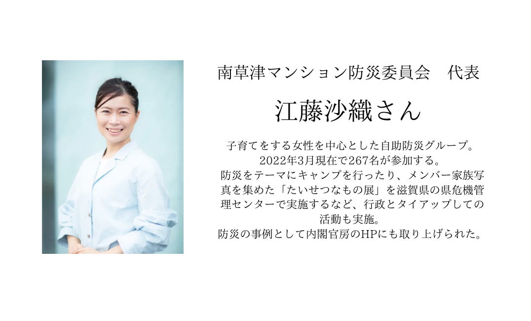 南草津マンション防災委員会を組織されている江藤沙織さんに監修をお願いし、