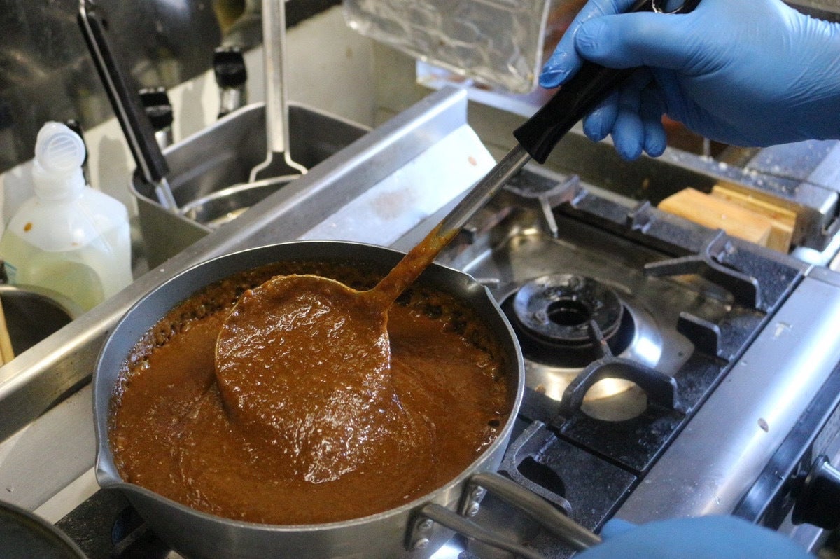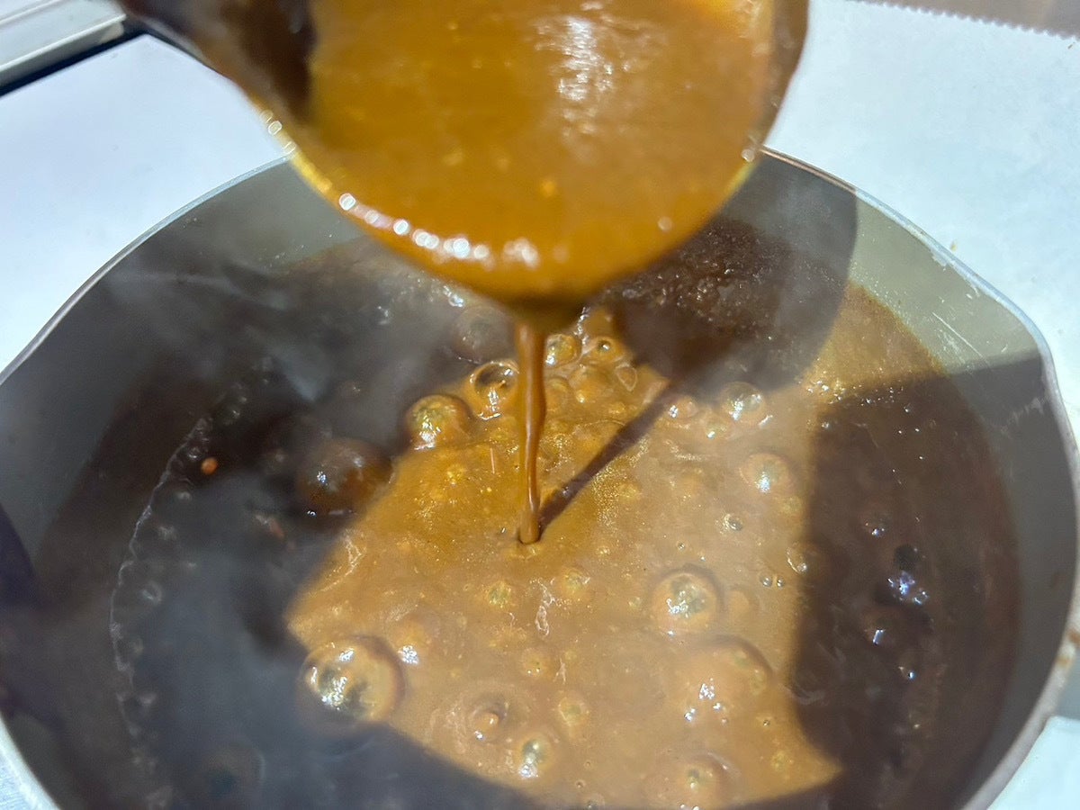 店頭同様、玉ねぎやフルーツをコトコト煮込んでとろみをつけたルーに仕上げることにしました。