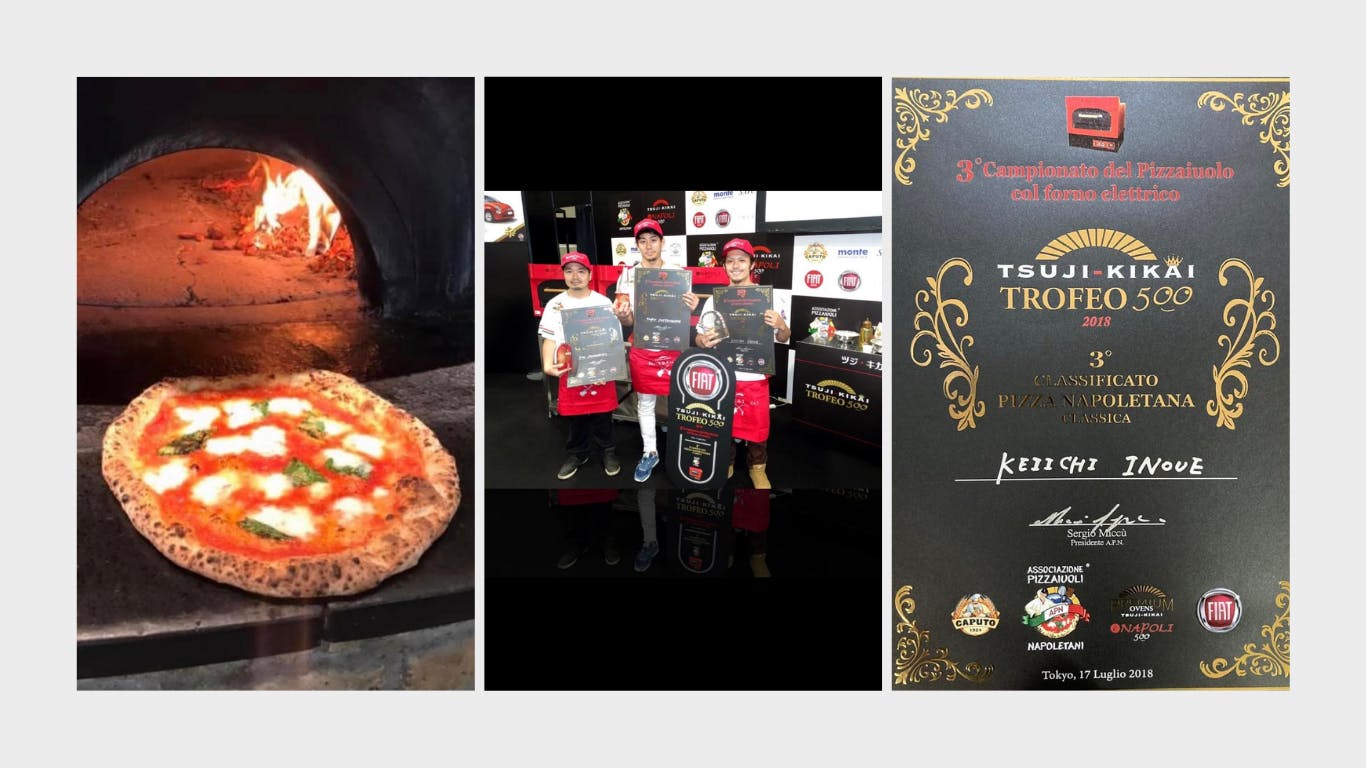 初めまして。福岡県出身の36歳です。私は18歳まで福岡で育ち、料理人を目指して東京の専門学校へ行きました。小さい頃から母や祖母の料理の手伝いをする事が好きで料理人になろうと思いました。東京で専門学校に通いつつ、様々なレストランに食べに行く中で一番衝撃を受けたのが19歳の頃に初めて食べたナポリピッツァでした。ピザには高級なイメージもなく、スーパーなどでも売っている手軽に食べれるものだけど、本格的な薪窯でプロが作ったものは言葉で表現できないほどおいしかった。イタリアの様な陽気な店内と、一瞬で生地が伸び一瞬で焼き上がるスピードにも感動を覚えました。その後いろいろな縁があり、六本木の和食料理店で4年ほど働いていましたが、やはり当時のナポリピッツァのことが忘れられず、ナポリピッツァの道へ飛び込みました。都内を中心に10年ほど修行をし、ナポリピッツァ世界チャンピオンにも指導を受けながら、朝から晩までピッツァ漬けの毎日を送りました。うまくいかないことも多く、辞めたいと思うことも多々ありましたが、納得いくものができたときの喜びや、お客様からの美味しかったという言葉、ピッツァの奥深さを知っていくに連れて、どんどんハマっていく自分がいました。2018年には日本のナポリピッツァの大会で3位を獲得できるまでに成長しました。
