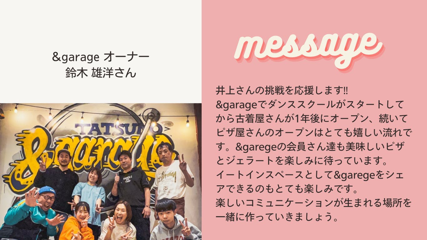 ダンススタジオ、古着、ピザ屋と、小さなカルチャー複合拠点としてまた商店街が楽しくなっていきそう、とワクワクしています。夏は、天竜川を見ながら、屋上でピザとドリンクを楽しめる場所になりますので、ぜひ遊びに来てくださいね!