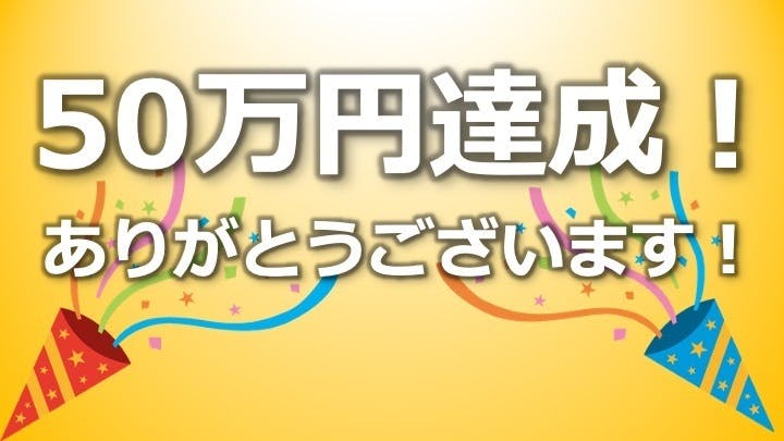 みなさんの応援のおかげで、こっそり目標にしていた50%、つまり50万円を達成いたしました!