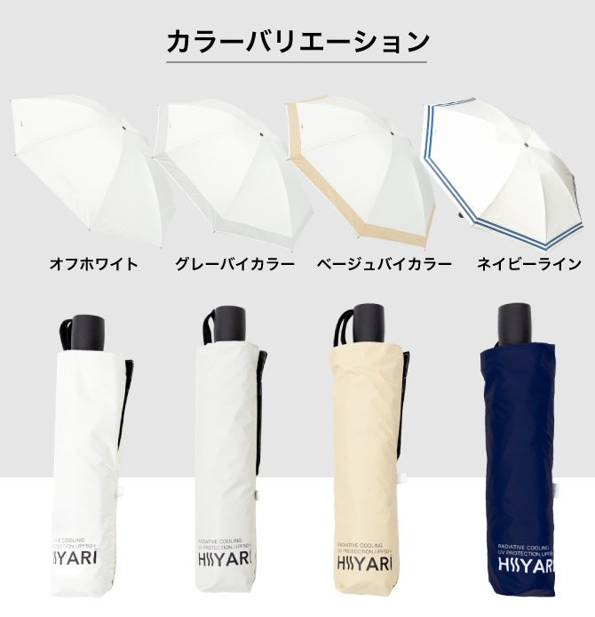 ※1 一般財団法人カケンセンターの遮熱性実験(JIS L 1951)にて、一部の他社「完全遮光日傘/100%遮光日傘」よりHIYARI®︎が優れた遮熱効果があることを比較立証済みです。