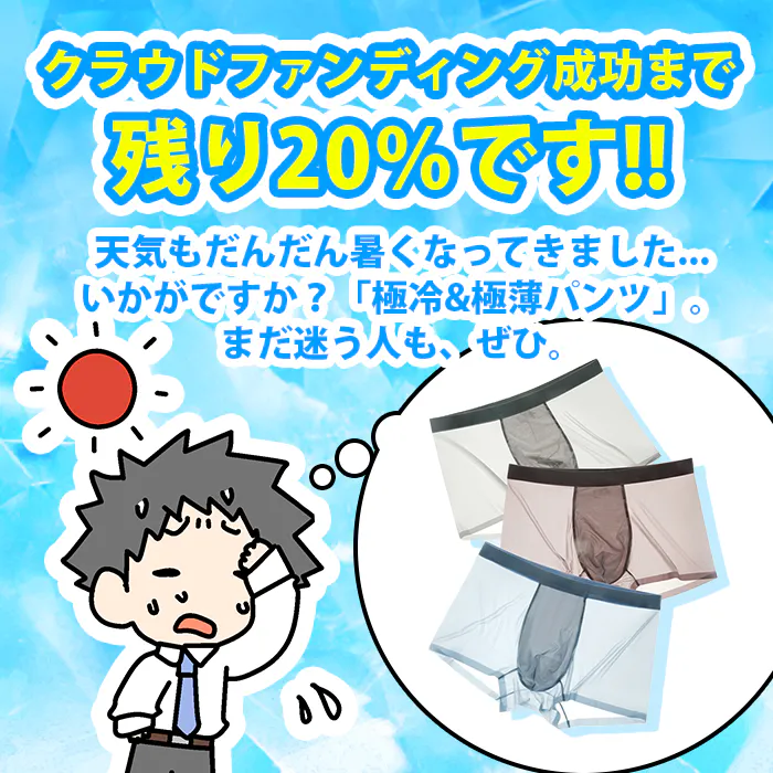 「極冷&極薄シームレス天然抗菌パンツ」は、日本のCAMPFIREで初めて販売します。