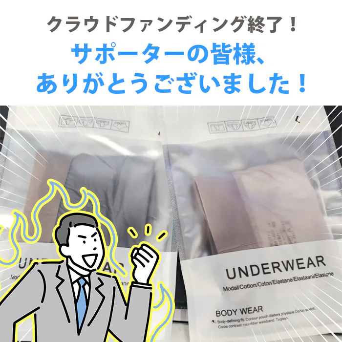 2024/06/28 20:02「極冷&極薄“存在感ゼロ”天然抗菌パンツ|韓国で大人気のボクサーパンツ日本に上陸!」プロジェクトオーナーのSolnodeです。この度はたくさんの温かいご支援をいただき、誠にありがとうございました。スタッフ一同、心より感謝申し上げます。本プロジェクトは日曜日をもって締め切らせていただきました。初めてCAMPFIREでメンズ向けのクラウドファンディングを行い、少し不安と緊張がありましたが、たくさんのご支援をいただけたこと、本当に感謝の気持ちでいっぱいです!リターンは、既にサポーターの皆様の元へ発送済みです!商品がお手元に届きましたら、是非SNSでシェア等していただけますと幸いです!皆様のご支援に改めて感謝申し上げます。引き続きよろしくお願いいたします。Solnodeスタッフ一同 もっと見る