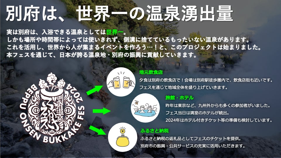 別府市民の皆様が誇りに思う「温泉」を世界に向けて発信するフェスを!