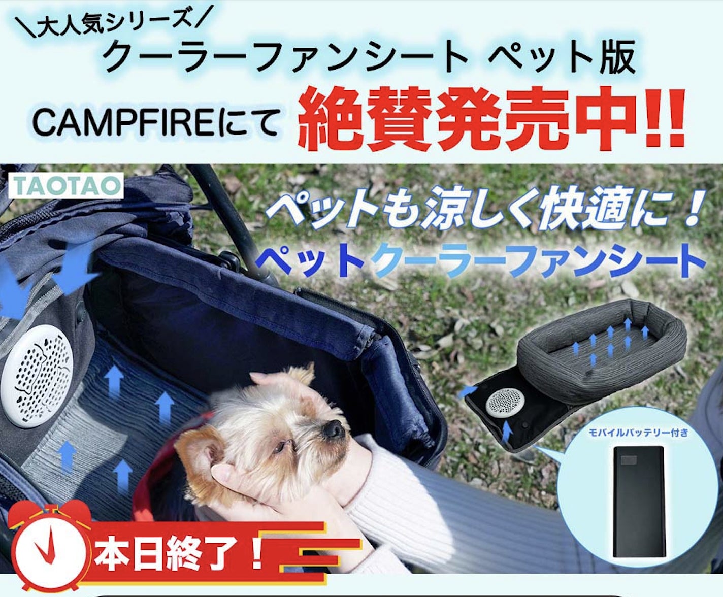 現在実施中の「ペットクーラーファンシート」の割引キャンペーンは本日23:59で終了となります!