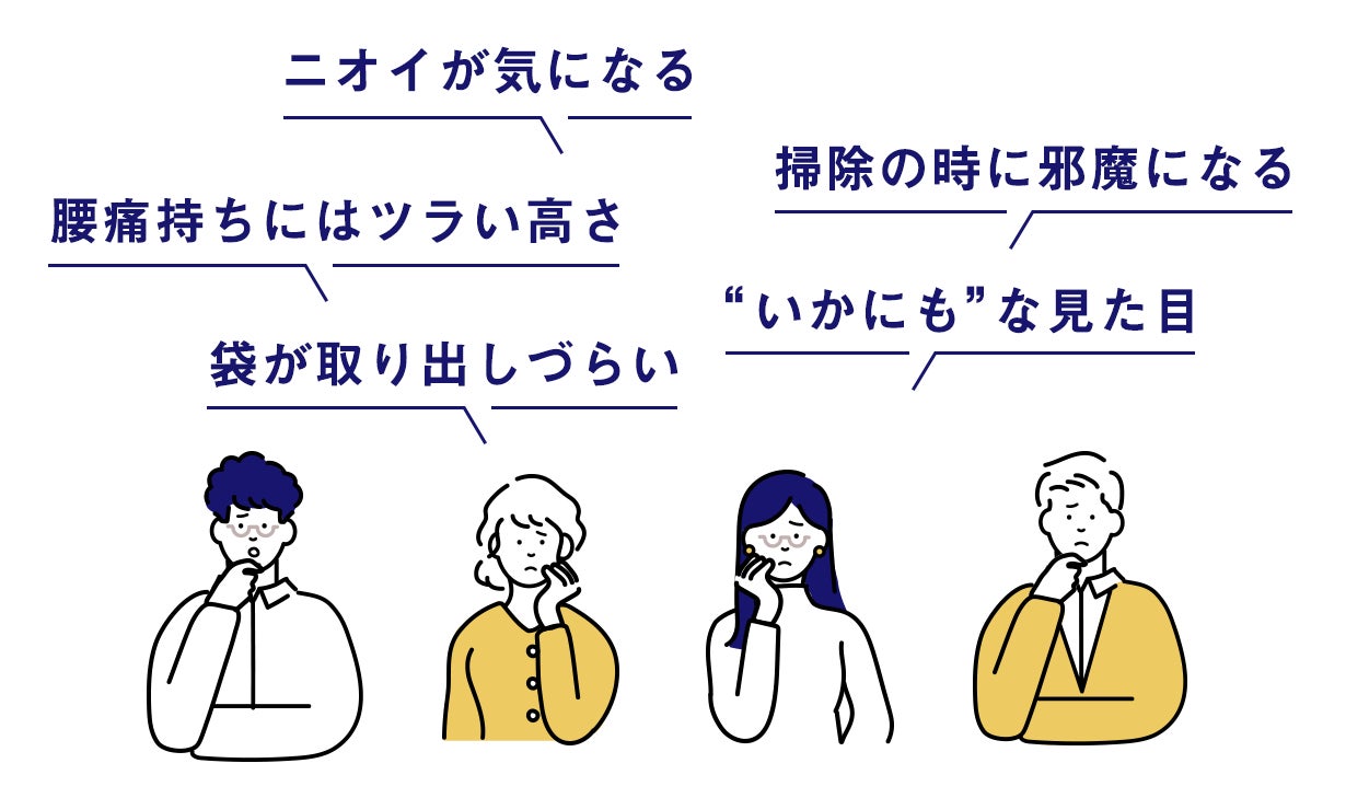 メーカー従来品においては、開閉の度にニオイが広がりやすいという悩みがありました。
