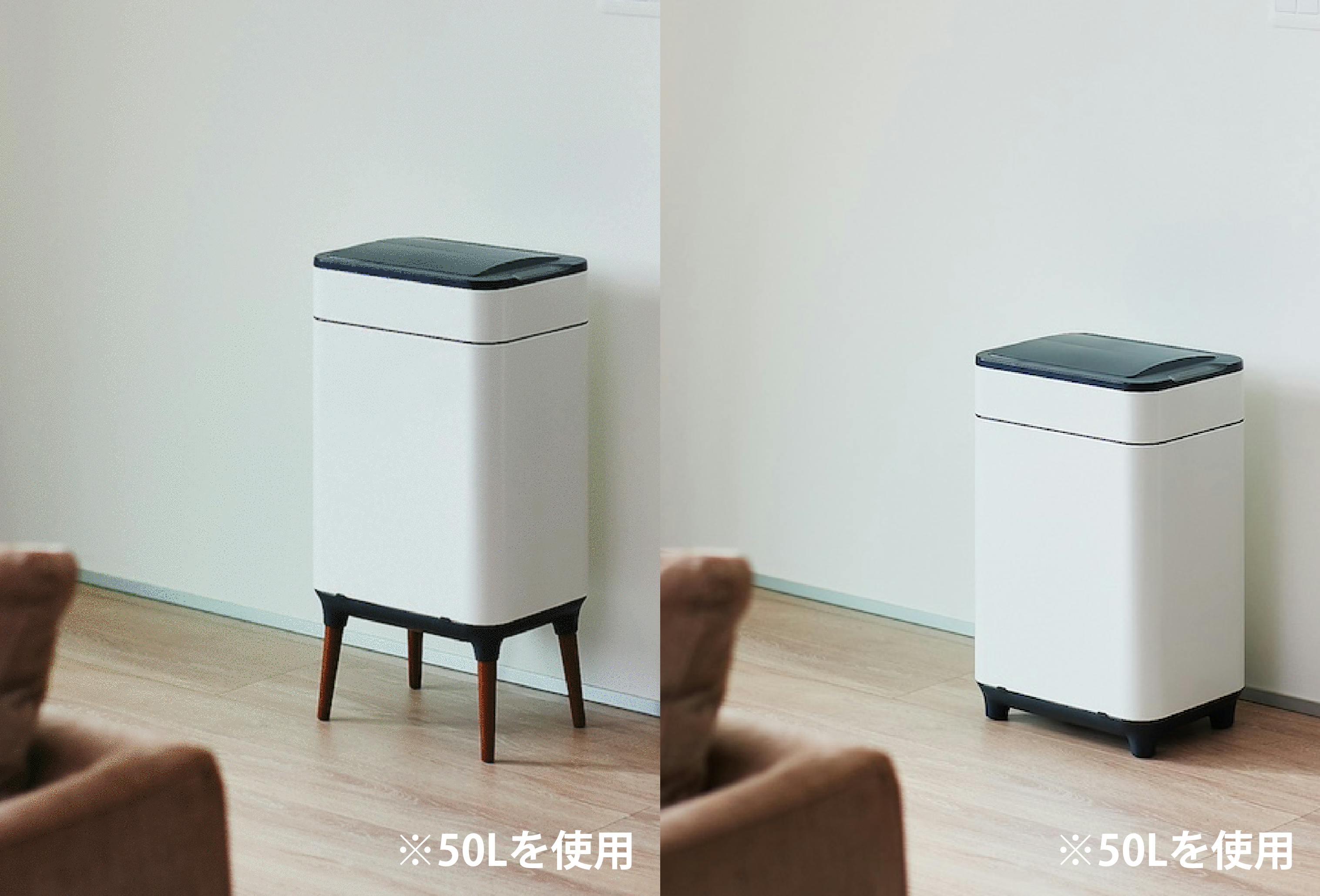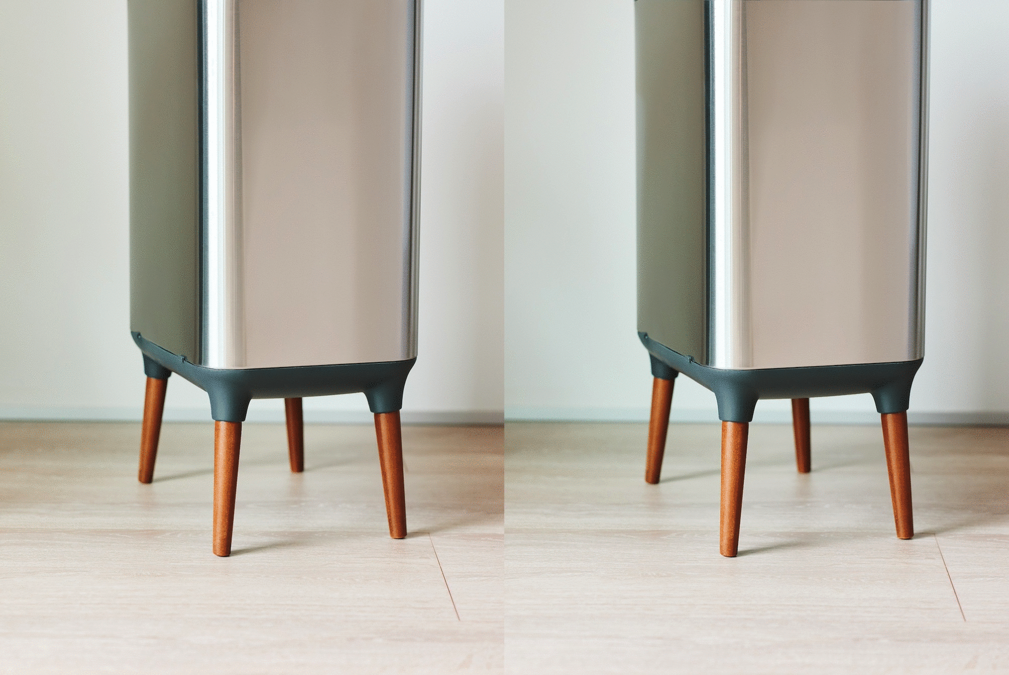 木製の脚が家具のように空間に馴染み、“いかにもゴミ箱"という存在感や圧迫感を和らげます。