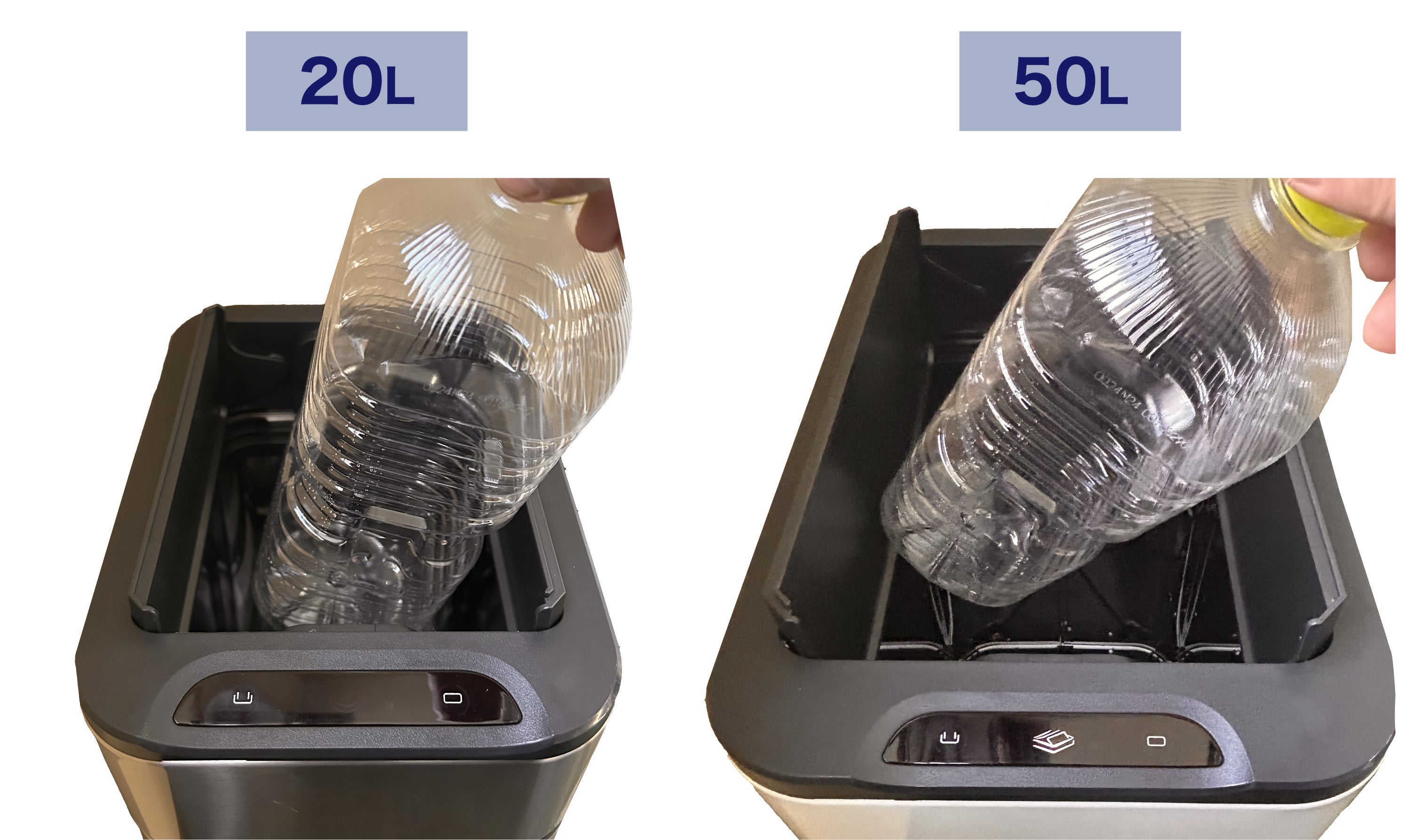 20L、50Lともに、2Lサイズのペットボトルも余裕で捨てられる広さです。