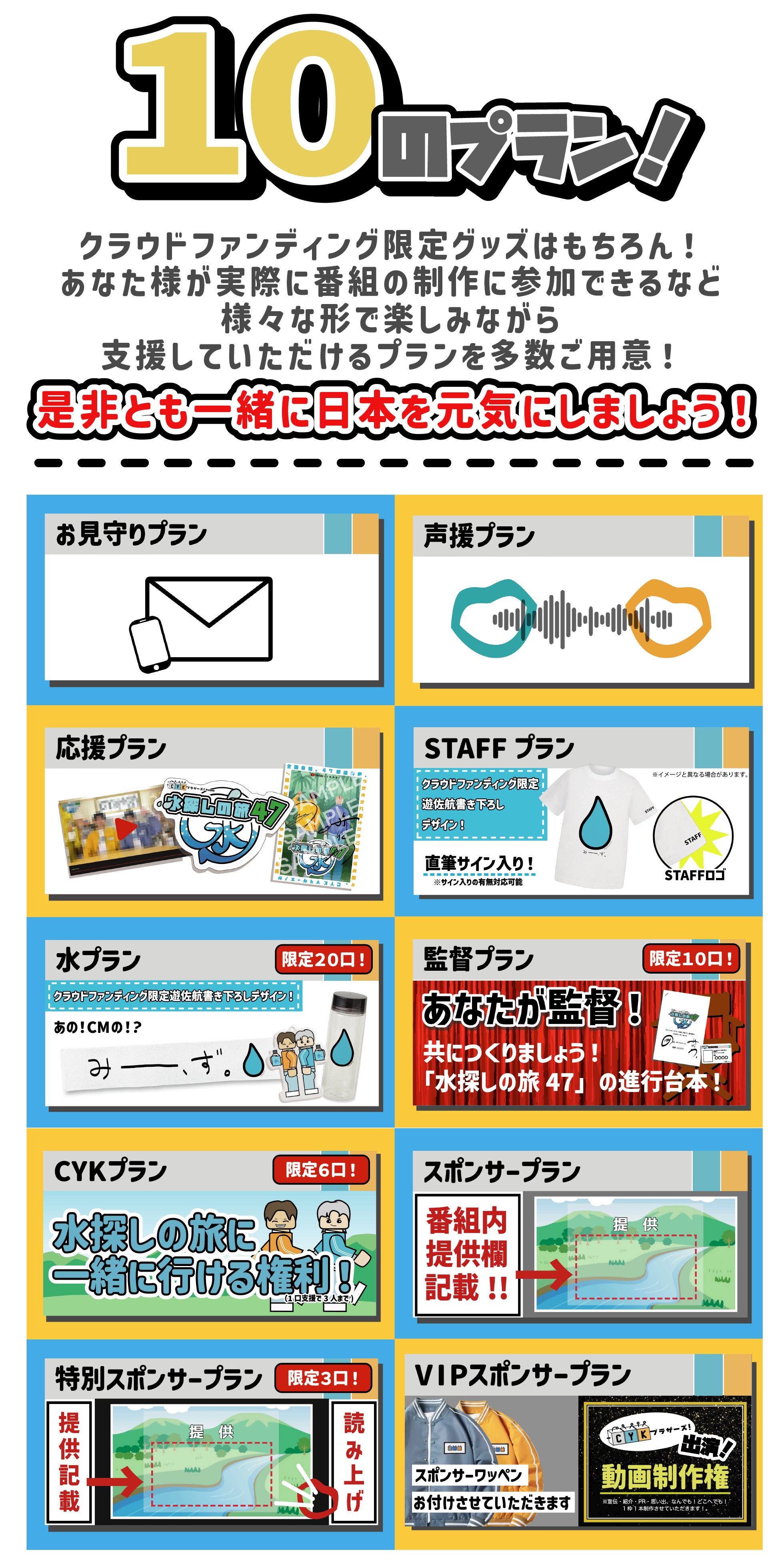 エンターテイメントを通して、"みんなに、元気を!今を生きる糧を!一歩踏み出す勇気を!"という信念のもと様々な挑戦をしている現在ですが、その中でも、更に力を入れていきたいと思っているのが今回の自主制作番組「水探しの旅47」です。