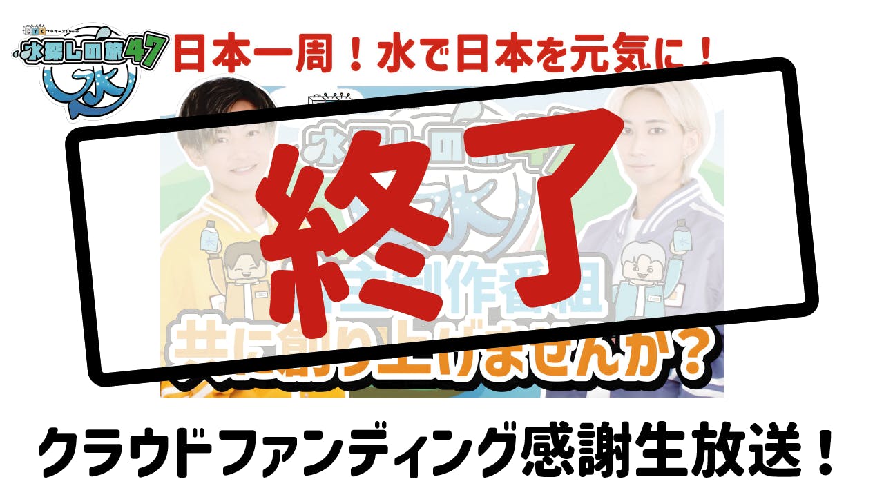 2024/08/30 22:53クラウドファンディングCYKブラザーズ!の水探しの旅47終了しました!お力添えご声援ご支援してくださりまして誠にありがとうございました!!!文字では伝えきれない想いをつたない言葉ではありますが感謝の気持ちとして口にさせていただきました。【クラファン感謝生放送】ご支援くださった皆さまは引き続きリターンをお楽しみにしていただけましたらとても幸いです!引き続き皆さまのお力を糧に「水探しの旅47」さらに皆さまに届く楽しんでいただける番組にできるよう精進して参りますので何卒お見守りしていただけましたら幸いです。遊佐航CYKブラザーズ!一同 もっと見る