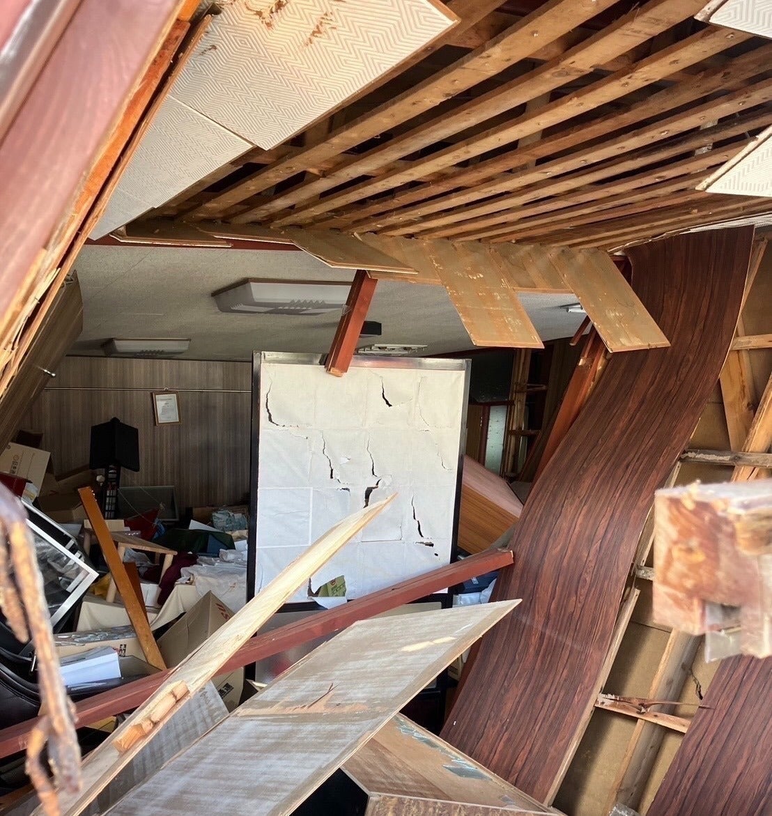 2024/06/03 15:47柿漆器店の柿明と申します。皆様、多大なるご支援いただきまことにありがとうございます。本日ですが、また震度5強の地震が輪島と珠洲の方で発生しました。非常に強い揺れで店舗が入っていた2階部分はもう人が入れる様な状態ではなくなってしまいました…。怪我が無いことだけで儲かりもの、そう思いながらも、何度も発生する地震を体験していると輪島で再建を目指すことに不安もあります。家の解体が進んで、落ち着いて修繕ができる様になることを祈りながら今日も頑張ってまいります。写真(2024/6/4撮影):2階部分がズレて階段があらぬ位置へ… もっと見る皆様、ご支援いただきありがとうございます!