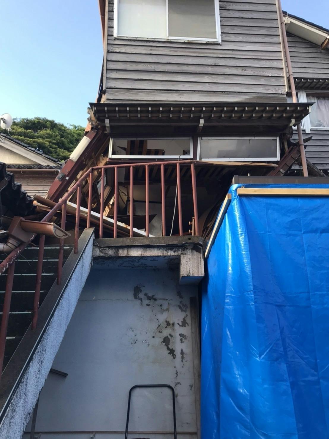 写真(2024/6/4撮影):2階部分がズレて階段があらぬ位置へ…
