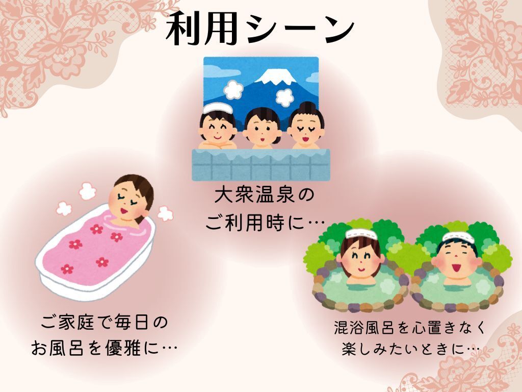 ・温浴施設内で洗い場から湯船に移動する際はしっかりと湯あみ着についている泡をしっかりと洗い流してから入浴して下さい。