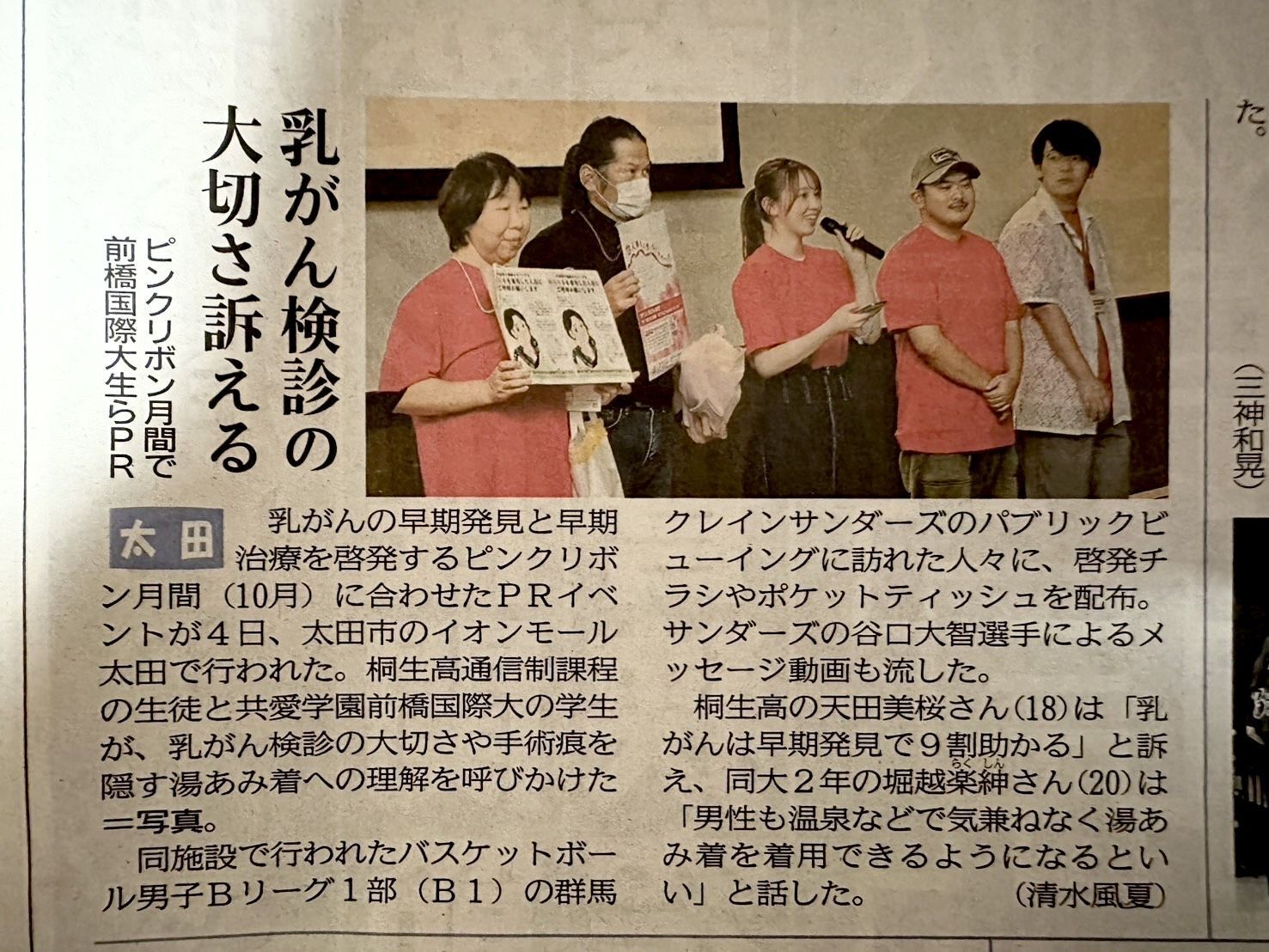 2025/11/05 15:3010月4日に愛知県刈谷市体育館で行われたBリーグ第1節に合わせて、イオンモール太田でパブリックビューイングが開催されました!10月の「ピンクリボン月間」に合わせて、乳がんの早期発見・早期治療を呼びかける機会をいただきました!今回は桐生高校通信制課程の生徒さんと私たち燈(とぼし)が乳がん検診の重要性や「湯あみ着」についてお話させていただきました! もっと見る