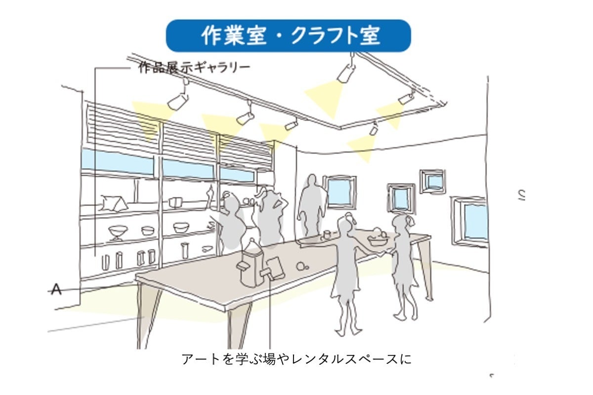 具体的には、新しい建物の1階にクラフト室をつくります。そこで障がい児や地域のこどもたちが絵を描き、工作ができる機会を作ります。絵や工作を教えるボランティアを募りサークルを結成し、こどもたちにアートにふれあう楽しさを伝えたいと考えています。また、クラフト室はギャラリーとしての貸し出しを行い、アーティストの絵画展、工作展なども開催したいと考えています。