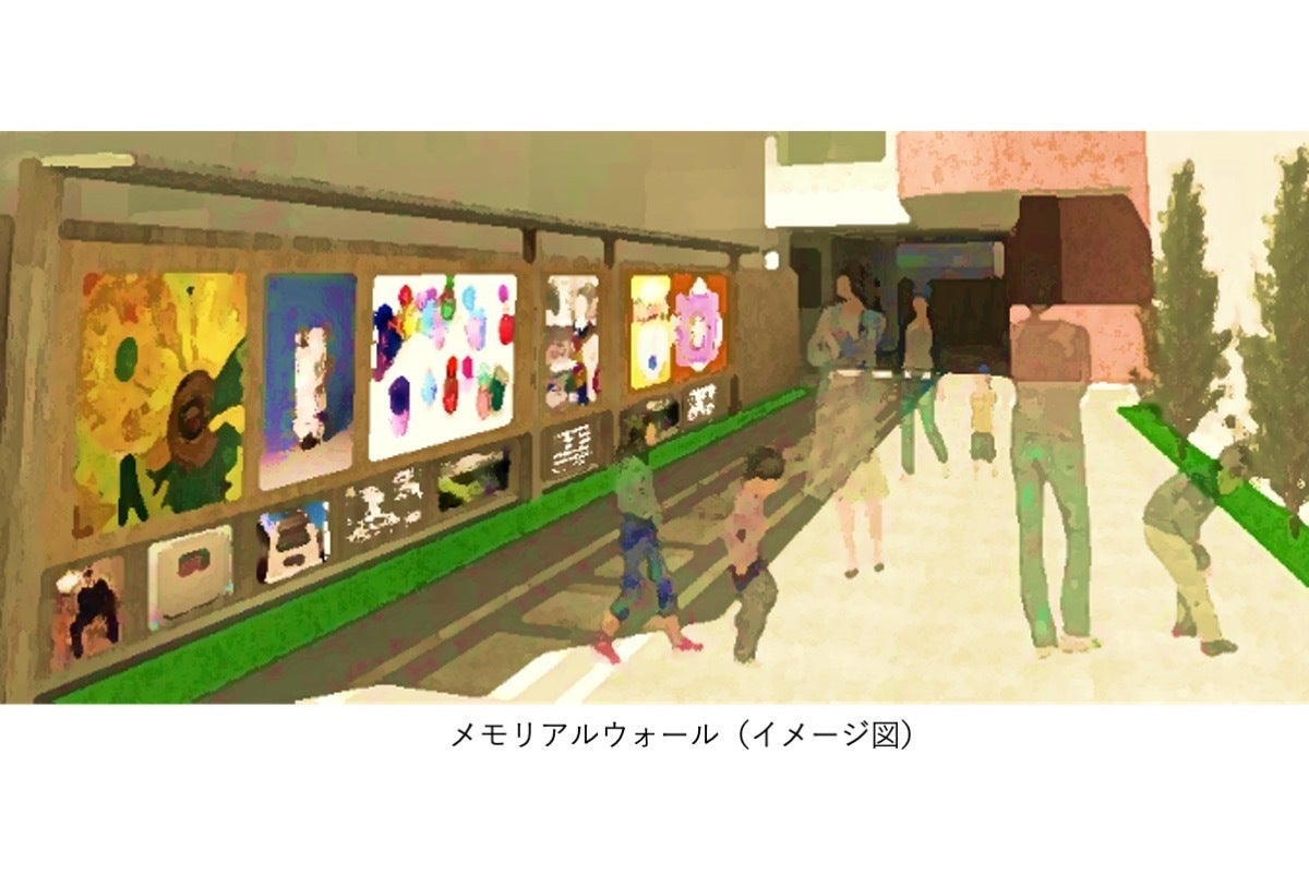 佐伯祐正と祐三との業績を伝える「メモリアルウォール」を設置します。場所は、入口通路の側面とし、訪れる方にご覧いただけるようにします。また、障がい児や地域のこどもたちが作った作品の掲示やイベントの案内も掲示します。