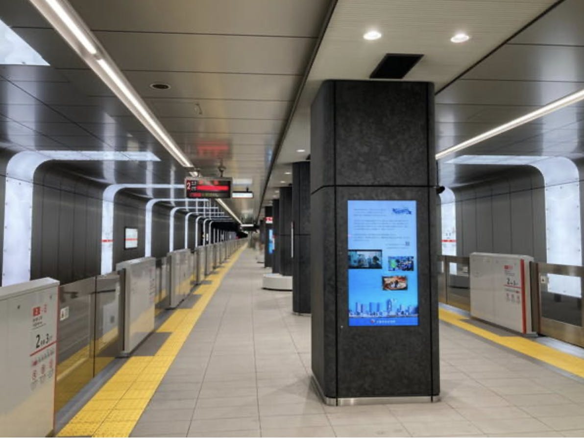 大阪メトロの駅のホームや改札周りには、デジタル情報を発信する「デジタルサイネージ」があります。