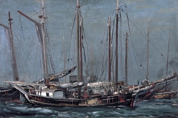 いよいよ、クラファン終了まであと5⽇です!! ぜひ、応援や拡散をよろしくお願いします。 今回は、佐伯祐三一家が第一回目の渡仏の後、大阪で過ごした1926年のお話。祐正・祐三の姉・文栄さんは、現大阪市港区弁天町で金融業を営む裕福な家に嫁いだ。実家で居心地が悪かった祐三は、ここに長期滞在していたようだ。文栄の娘、息子とも交流があった。この家に滞在した祐三は、文栄の息子を伴ってよく写生に出かけたという。中之島の吉村洋画材料店(現ホルベイン)で画材を買い求め、その後安治川沿いでスケッチをしていたようだ。※吉村洋画材料店は、現在も絵の具など画材を製造・販売するホルベインのこと。https://www.holbein.co.jp/company/history/chronology.html イーゼルや絵の道具を分担して持たせて出かけ、祐三は夢中になって滞船を描いた。真横から描かれた船は、帆柱が垂直にそそり立ち、大きな空を分割しリズミカルで緊張感のある絵に仕上がっている。また、祐三の筆さばきによって、船の胴体のざらつきや風水に耐えるテクスチャーが見事に表現されている。この時期にいくつもの作品を残している(下図は、「滞船」1926年ごろ ENEOS株式会社蔵)。文栄さんのお孫さんが聞いた話によると、「写生をしていると、水辺に立てかけたイーゼルが突風で吹き飛ばされることもあった。これを文栄の息子は度々とりに行かされたそうだ。風が木屑や藁を拾い祐三の描く絵に張り付くことがあった。気を利かせて取り除こうとすると、作品が損なわれるからそのままでいいと祐三に諌められたという。」無頓着なようでいて真っ直ぐに絵だけを極めたい祐三の心持ちがよく現れているエピソードである。 また、祐三は、蟹の絵をこの家で描いている(下図は、「蟹」1926年ごろ 個人蔵)この蟹の絵にもエピソードがあり、お話を聞かせてもらった。ある時、この家の主人が茹でたカニをもらったそうだが、いつ料理したかわからないから食べたくないとゴミ箱に捨ててしまったそうだ。「おそらく、主人は活(イケ)のまま仕入れ、家で茹でたものでないと口にしたくないと思ったんでしょう。今思えば、なんて贅沢だったんでしょうね。」と笑って教えてくれた。ところが、それを見つけた祐三はすぐにそれを拾い上げ、そそくさと写生をし、その後ペロリと平らげてしまったそうだ。確かに、赤く茹で上がり勇ましくも、とても美味しそうである。それを見事に表現している。