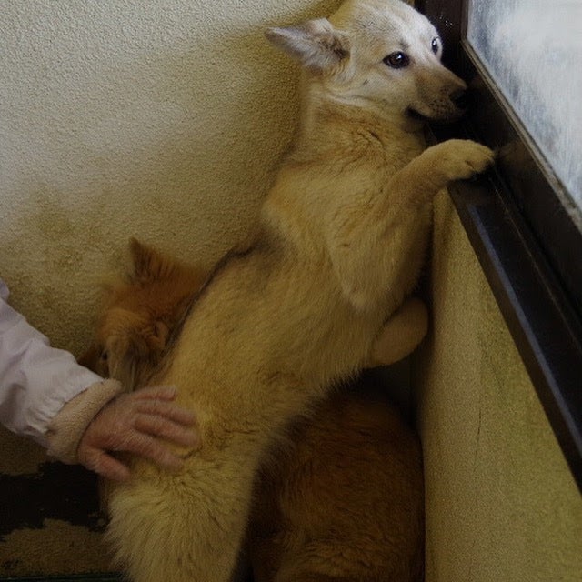 2回くらいシャンプーして、家の中に自由にしたものの、常に人間を警戒して、常に人間の反対側の壁に張り付いています。スパルタ式で逃げようとする杏子を無理やり外に連れ出して散歩をしたりして、そのうちなんとか散歩ができるようになり、撫でられるようにもなりましたが、まだ杏子の方からは距離のある様子でした。