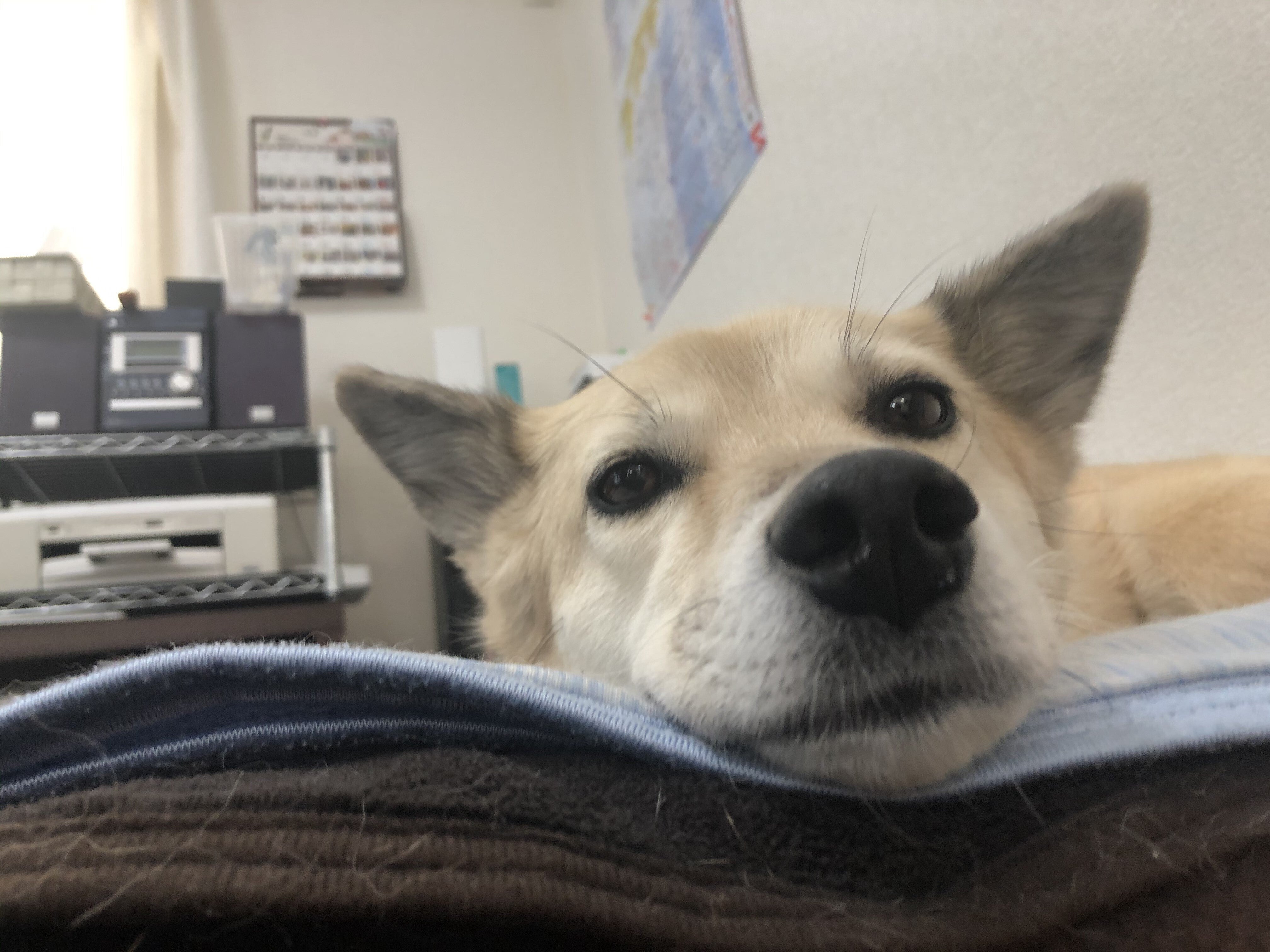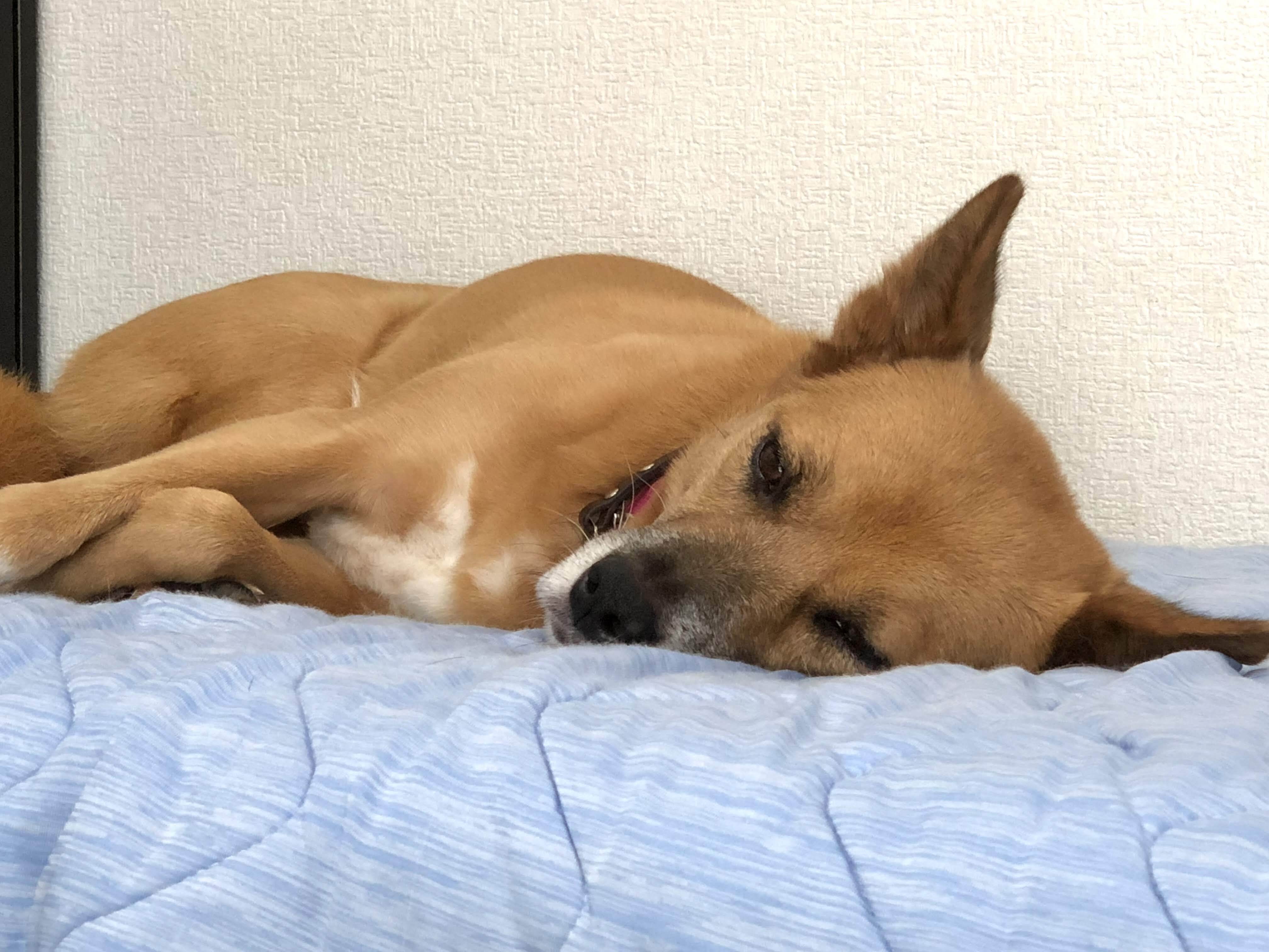 杏子(あんず)は、最初は譲渡する予定で預かっていたワンコでした。前に預かっていた子がそろそろ譲渡というタイミングで、次の預かりワンコを探していたところでした。愛護センターのブログを読んでいたら、気になる子がいました。→リンクずっと外を見つめて身体を固くしているのが、まだ名前がなかったころの杏子です。2014年の写真です。一体どうしてこんなに人間が嫌いなんだろうか?と気になり、「ちょっと口が出る子(噛む子)ですよ」と言われましたが、「噛まれてもいいや」という気持ちで引き出してもらいました。引き出してみると、確かに無理に何かをしようとすると「嫌なことをしたら噛むわよ!」と、少し歯を当ててきます。でも、穴が開くほど噛む子ではありませんでした。2回くらいシャンプーして、家の中に自由にしたものの、常に人間を警戒して、常に人間の反対側の壁に張り付いています。スパルタ式で逃げようとする杏子を無理やり外に連れ出して散歩をしたりして、そのうちなんとか散歩ができるようになり、撫でられるようにもなりましたが、まだ杏子の方からは距離のある様子でした。顔が可愛いので「是非うちの子に」という家庭はそれなりにいたのですが、人間嫌いの杏子に合いそうな家庭(噛まれても何があっても逃がさないという決意のある家庭) はなく、「譲渡した途端逃がされそうだな」という予感しかなくて、結局2年半我が家で里親探しをしていました。数年の預かりボランティアの間に、すでに 「譲渡先で逃がしても探してもらえず、そのまま連絡もなくなる」というパターンを何度も耳にしていた私は、せっかくここまで人慣らしをしたのにまた逃がされては2年半の労力が水の泡になりかねません。私は散歩中に突然杏子が暴れだし(何かにびっくりして)リードに爪が引っかかって剥がれたことがありますが、それでも絶対にリードから手を放しませんでした。爪は剥がれてもまた生えますが、逃げた杏子は二度と見つからない確信があったためです。そんなこんながあり、結局、杏子はうちの子にすることにしたのです。「うちの子にする」と決めた途端、杏子もそれを感じたのかみるみる人馴れが進み、5年もたったころにはすっかり甘えん坊になりました。ナナコに次ぐおばあちゃんワンコ(推定13歳)として、我が家で過ごしています。