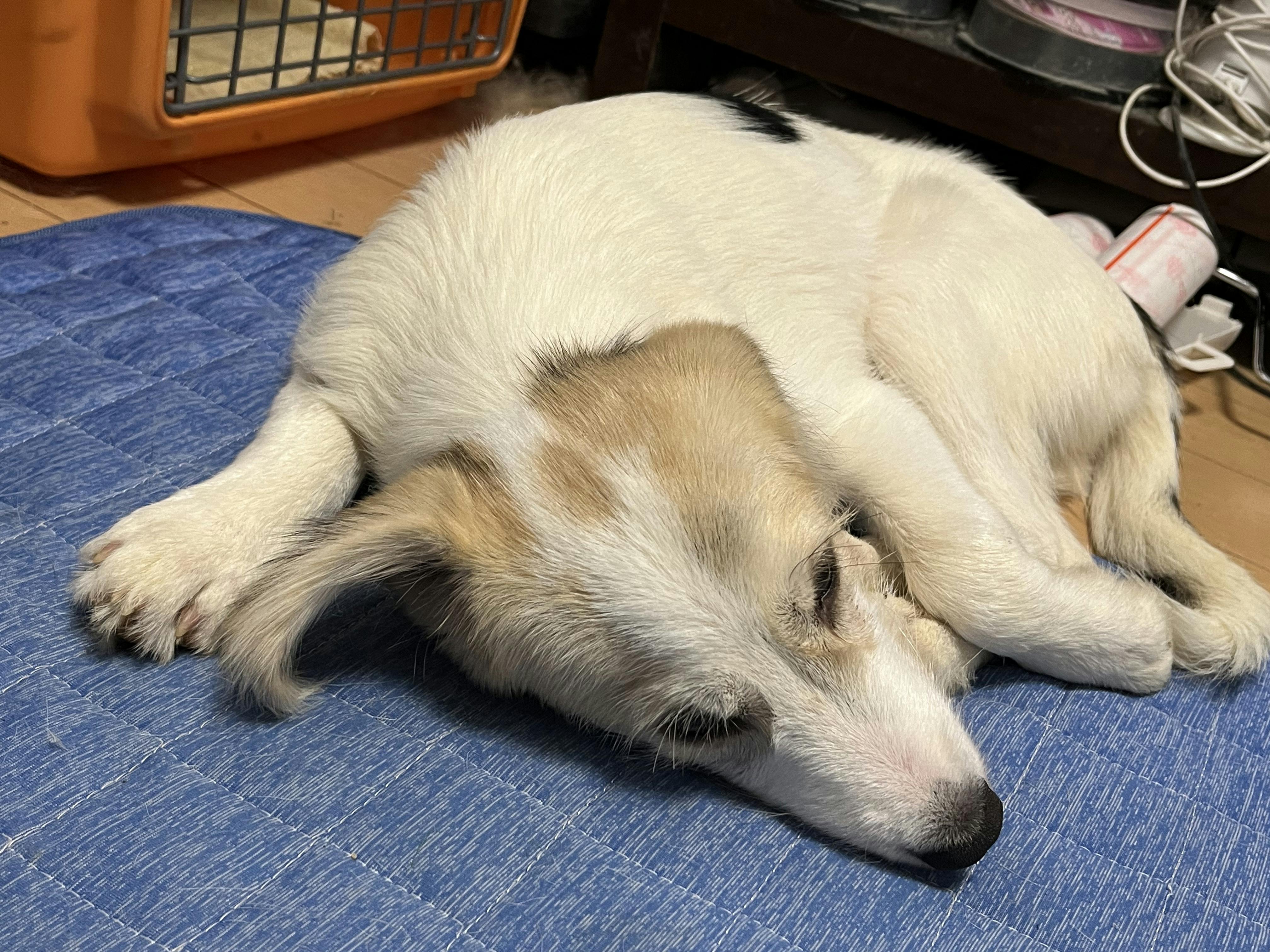 2024/06/09 16:53このお店を開店する直前に、東京の団体さんにお願いされたのがくるみです。奄美大島で保護された野犬のうちの一匹でした。元々は個人宅での多頭飼育崩壊で、60匹もの犬が家の中や外で生息していました。そんな中での、ほぼ野犬状態だったワンコの一匹です。状況の分かる、お世話になっている宮崎の団体さんの記事です→リンクしかも簡単に保護された犬たちとは別に、なかなか保護されなかった群れのワンコで、まだ5ヶ月くらいだったのですが人間に対する警戒心バリバリで、触れるようになるまで2ヶ月くらいかかりました。最初は首輪もリードも嫌で、人間も家の外も嫌で、ケージの中から伺うように人間を見ていて、近づくと唸る暴れるで、こんなに難しい子は初めてでした。杏子ですらすぐに触れたのですが(汗)クレートのまま動物病院に連れて行き、クレートの外からワクチン接種をしてもらい、皮手袋をつけて噛まれながら首輪とリードをつけて、やっとお散歩の特訓が出来るように。しかし慣れてみれば、陽気で可愛いくて変な格好で寝る面白い子でした。今は都内の先住犬のいるおうちに貰われて、楽しそうに過ごしていますよ。幸せそうな様子にほっこりします♪ もっと見る