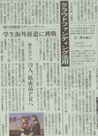 本日5/30(水)南日本新聞さんに、弊社クラウドファンディングについて取り上げて頂きましたので、ご報告させていただきます。