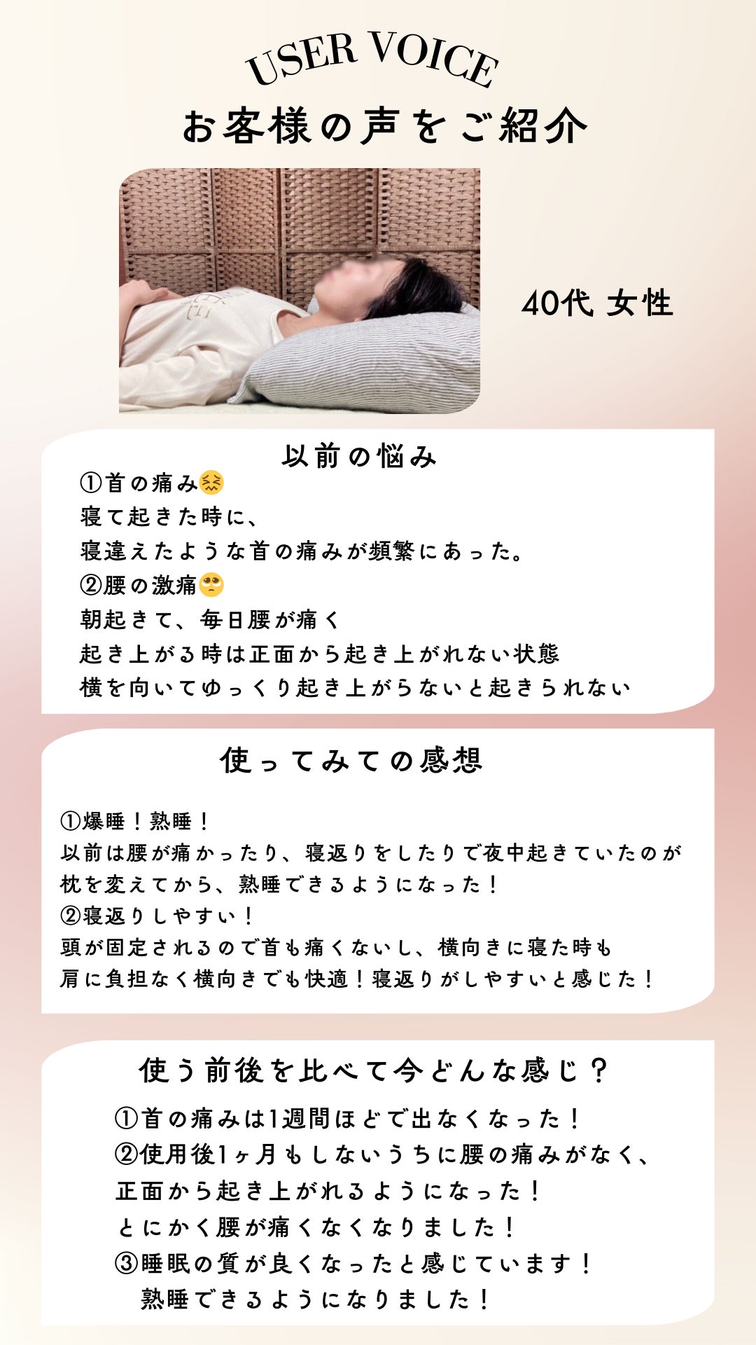 【あなたにピッタリの高さで睡眠の質をUP】