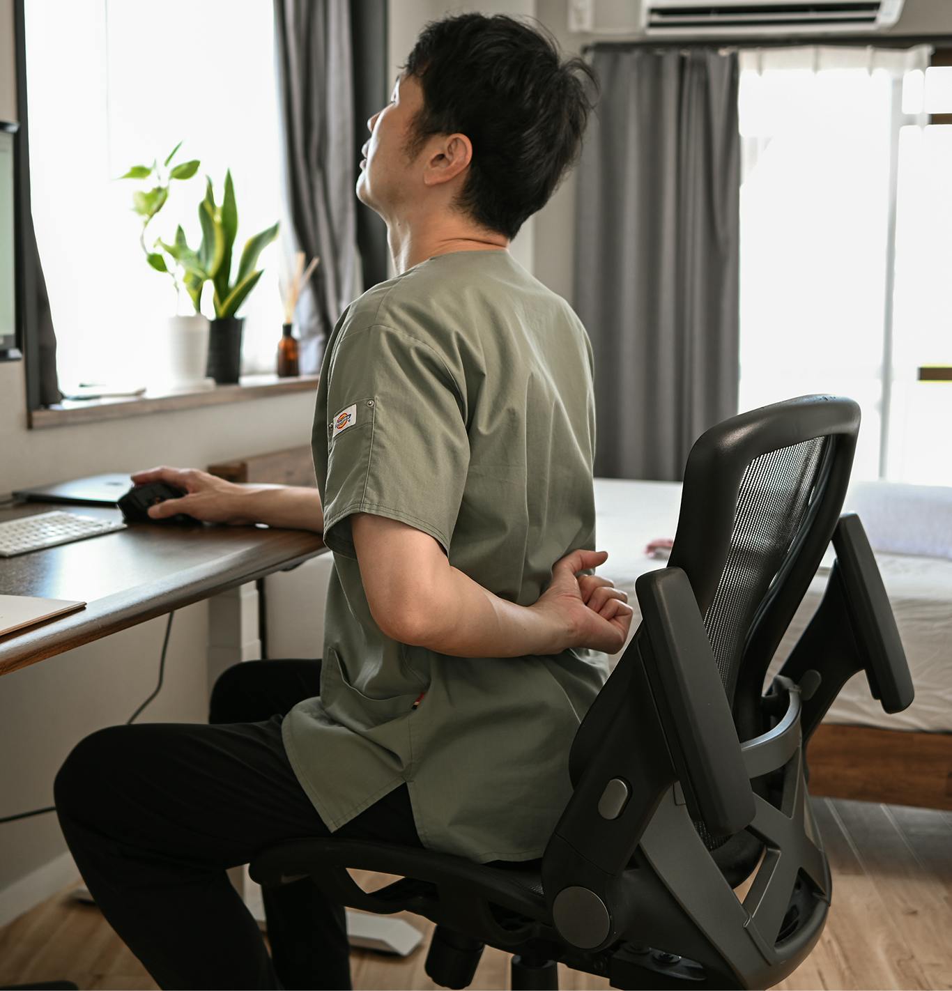 腰痛肩こり首の痛みなどの身体の痛みの根本的な原因は、生活習慣や食事スタイル、睡眠不足など様々です。でも、例えばオフィスワークの中で『頑張って』『我慢して』正しい姿勢でずーっとタイピング!というのは難しい…私も無理。。。笑