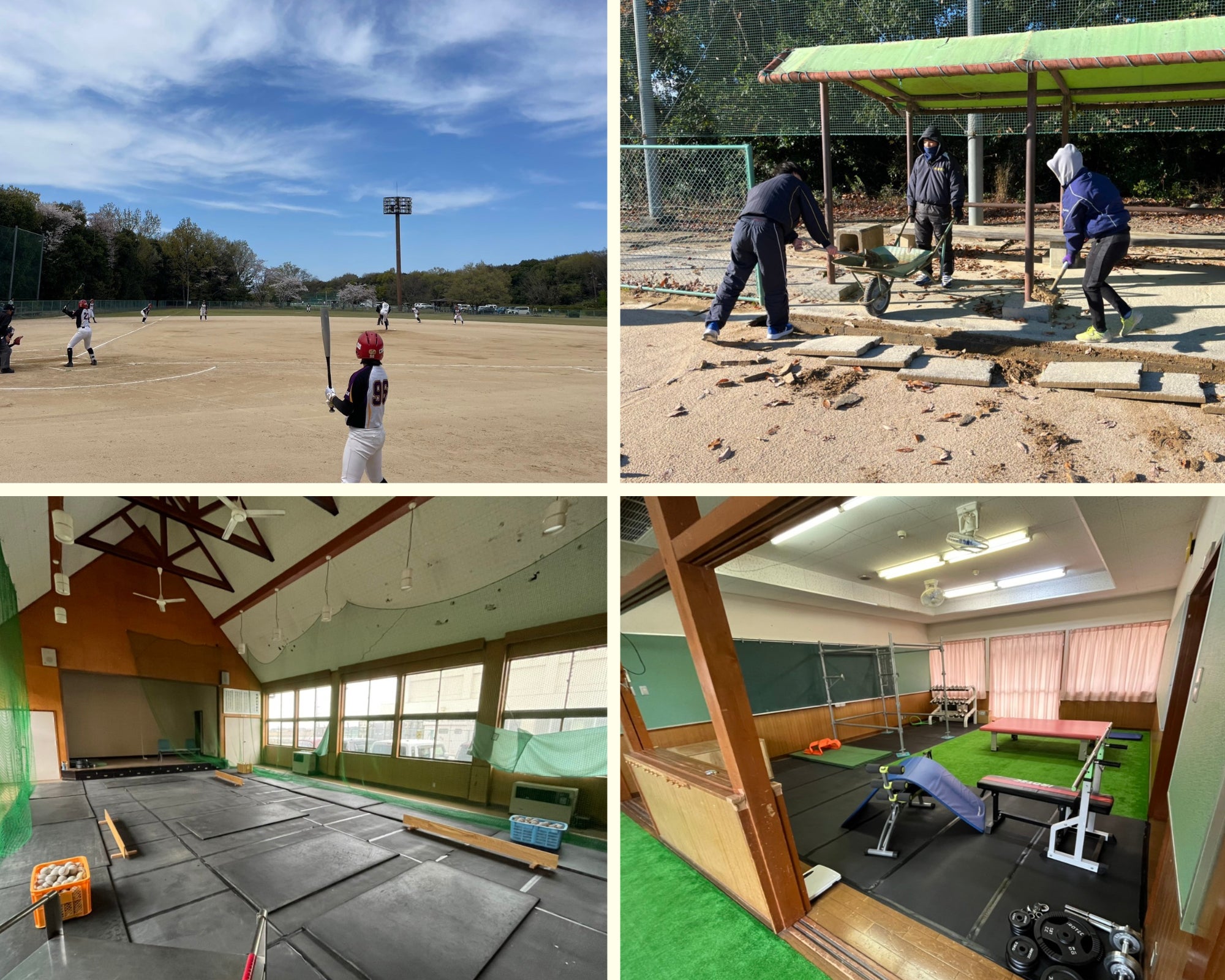 また廃園になった幼稚園をお借りし、ウエイトルーム、ミーティングルーム、ティー練習場等を作成し、雨天時はもちろん就業後も自主練習場として使用しており、野球漬けの毎日を送っています。