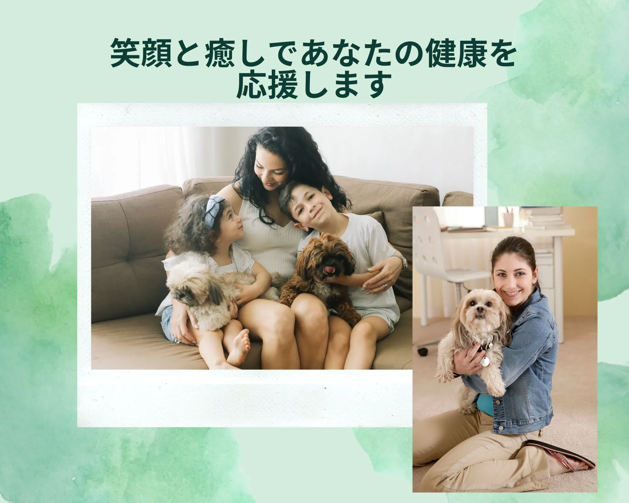 犬とのふれあいがもたらす心の安らぎと、心とからだの健康が幸せにつながる個別のサービスを通じて、その方が自分らしく最幸の人生を過ごされることが私たちの願いです。