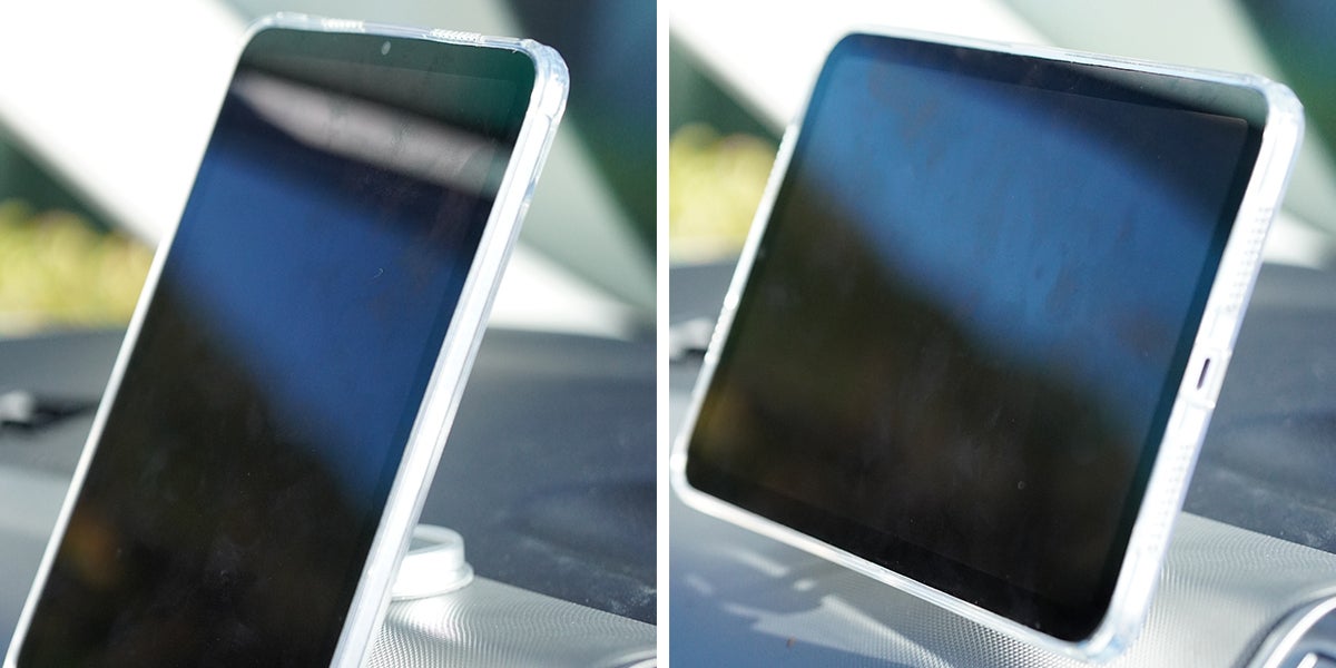 8インチから10インチ程度のiPadやTabletも固定OK(タブレットサイズや重量によっては取付ができない場合があります。)