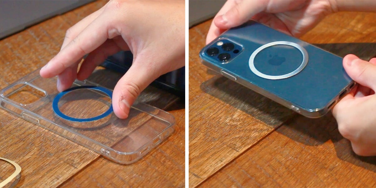 マグネット吸着に対応していないスマートフォンやタブレットでも、付属のメタルシールを端末背面に貼り付けることで「どこでも」マグネットスタンドへ対応することができます。