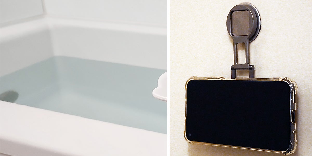 【入浴ホルダー】土台ホルダーを浴槽にも設置することで、ワンタッチで簡単取付。入浴中のリラックスタイムが向上します