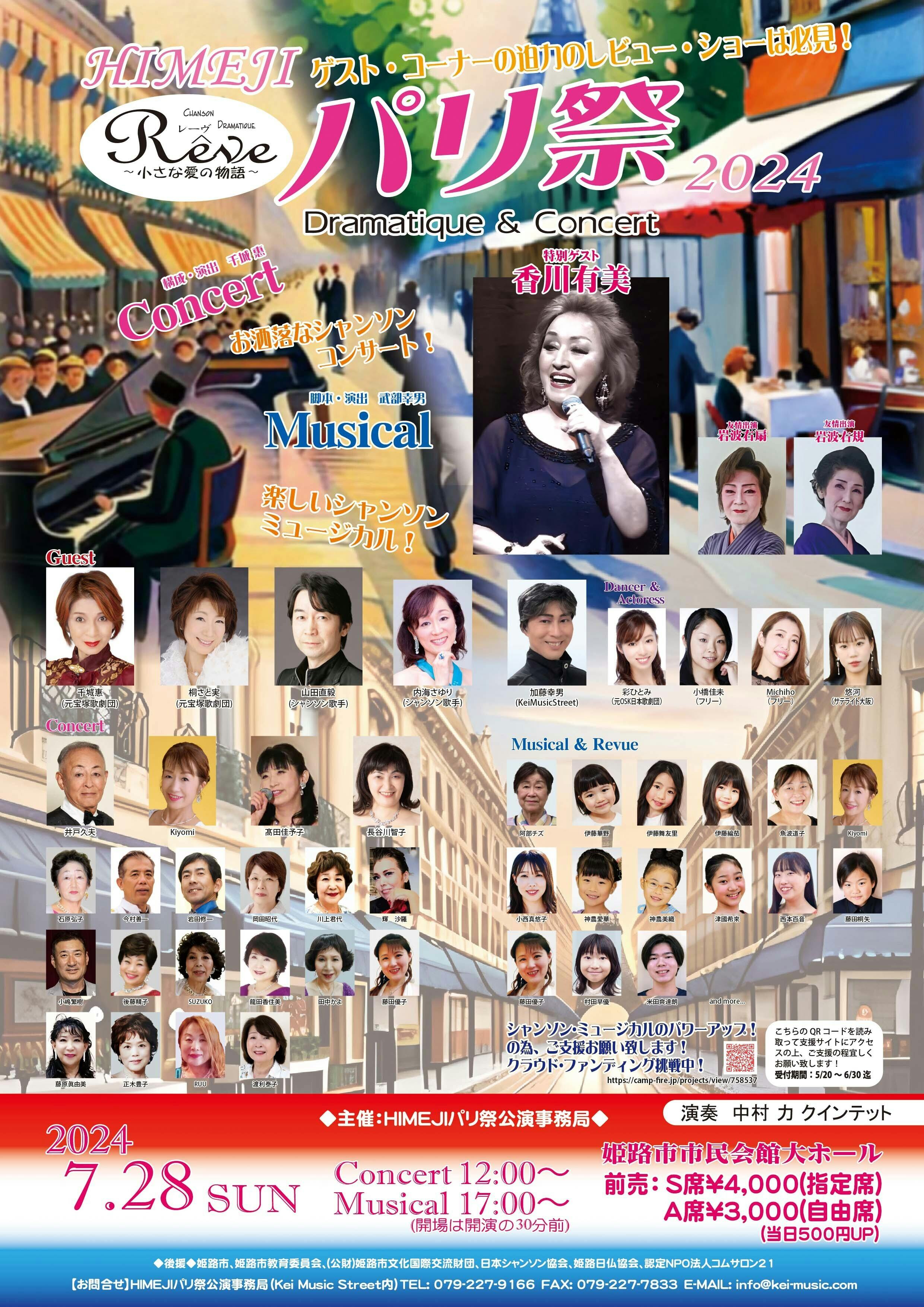 「シャンソン・ミュージカル」の魅力をより多くの方に広めるため、今年9月末には西宮の兵庫県立芸術文化センター阪急中ホールにおいて、R6年度舞台芸術団体フェスティバルの参加作品として、この度の「HIMEJIパリ祭2024」のシャンソン・ミュージカルをブラッシュアップした作品を上演予定です。