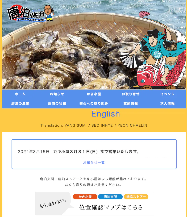 この状況を福岡市漁協唐泊支所に伝え、サイト構築の助言をしましたが、数年に渡ったコロナ禍、また昨年漁期は、全国的にも問題となった牡蠣の不漁による収入ダウンで、資金的に厳しい状況であることわかりました。さらに、漁協にはそのノウハウがないため、我々が支援したいと考えました。