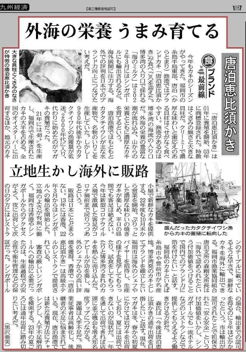 唐泊恵比須かきが世界ブランドになれるように、ご支援よろしくお願いします。