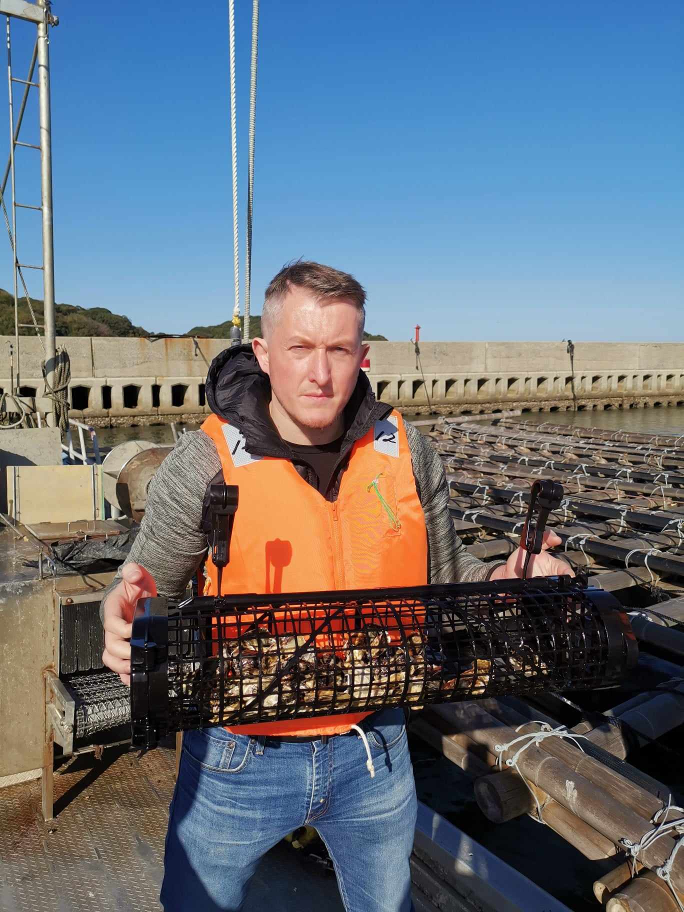 漁船での養殖場、出荷作業見学