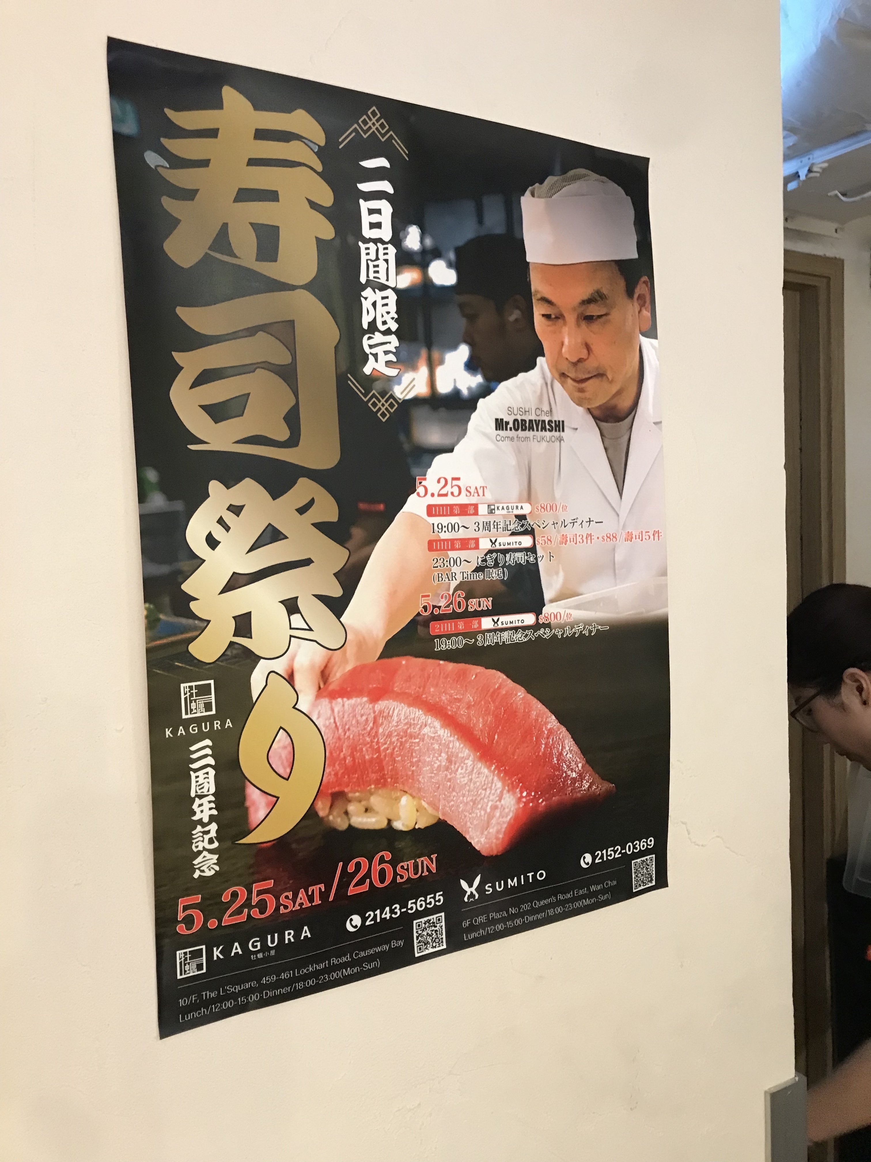 昨日は、香港にて鮨忠尾の尾林大将がKAGURA牡蠣小屋3周年を記念した、寿司イベントを開催しました。