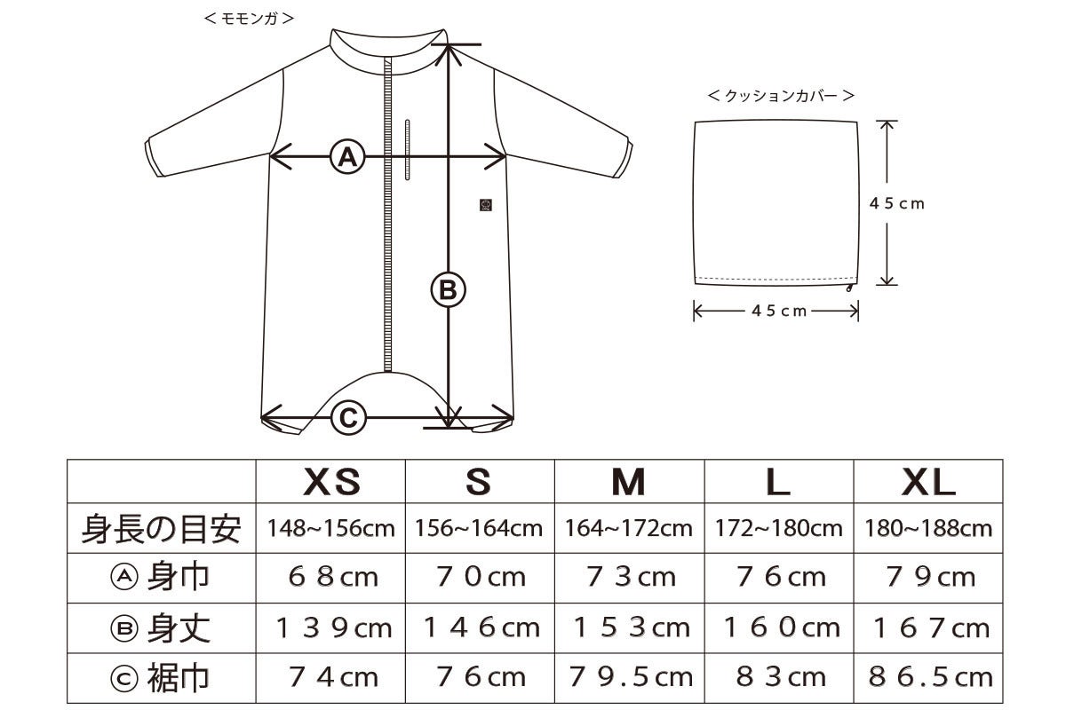 XS、S、M、L、XL の5サイズ