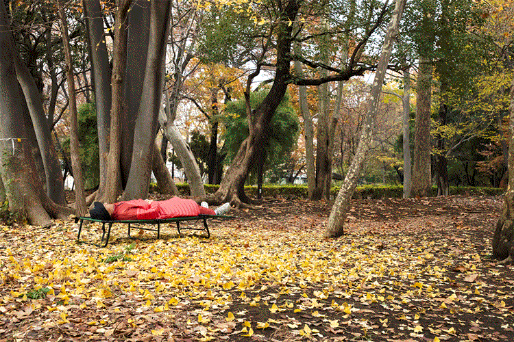 「モモンガ」は寒さを感じた時にどんな服の上にもサッと着れてすぐに暖かさに包まれ自由に動くことができる画期的な寝袋です。