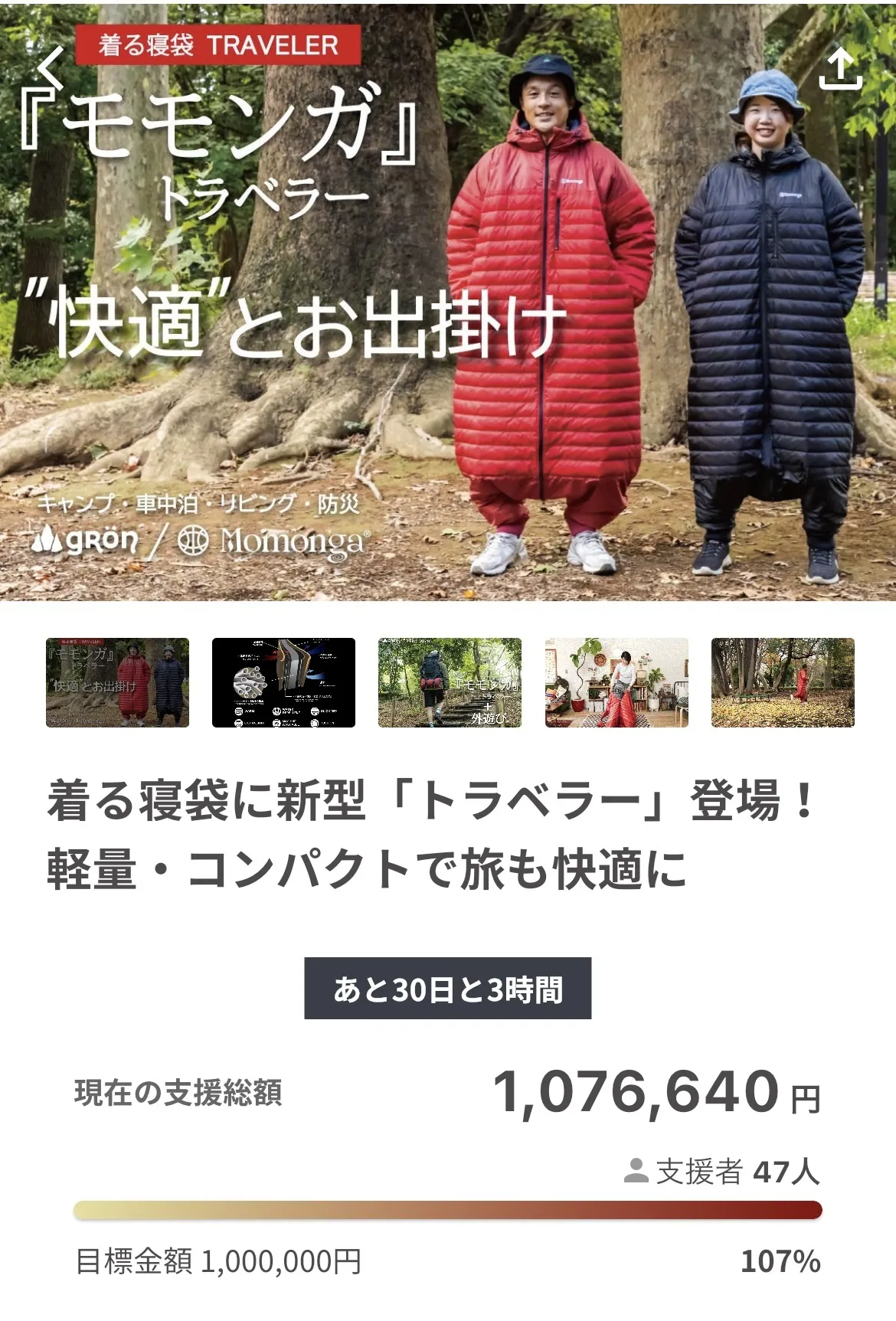 この度は【着る寝袋に新型「トラベラー」登場!軽量・コンパクトで旅も快適に】プロジェクトにご支援をいただきありがとうございます。