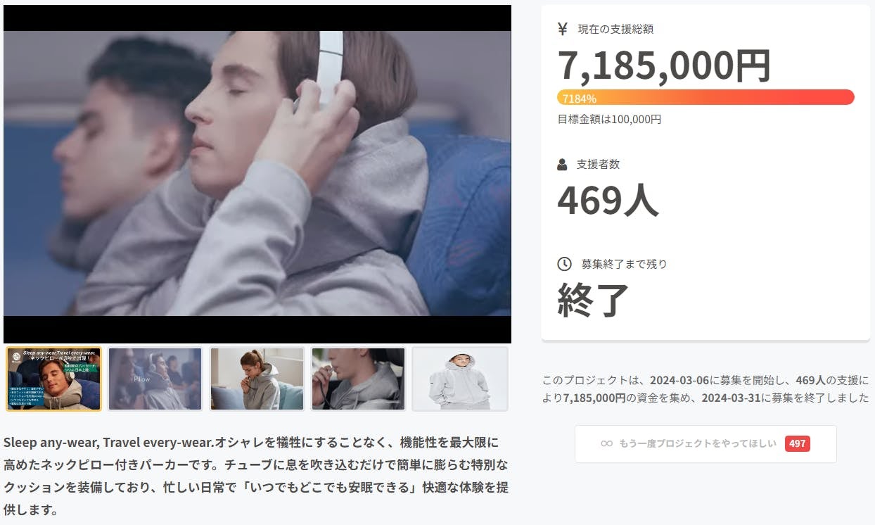 そのうちにネックピローとフードを組み合わせた製品を開発してみようというアイデアが浮かび、