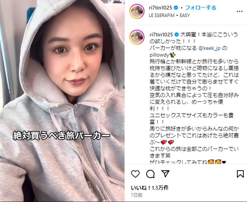 Instagramフォロワー34万人の石井里奈氏に、自身のInstagramでPillowdyをご紹介いただきました。